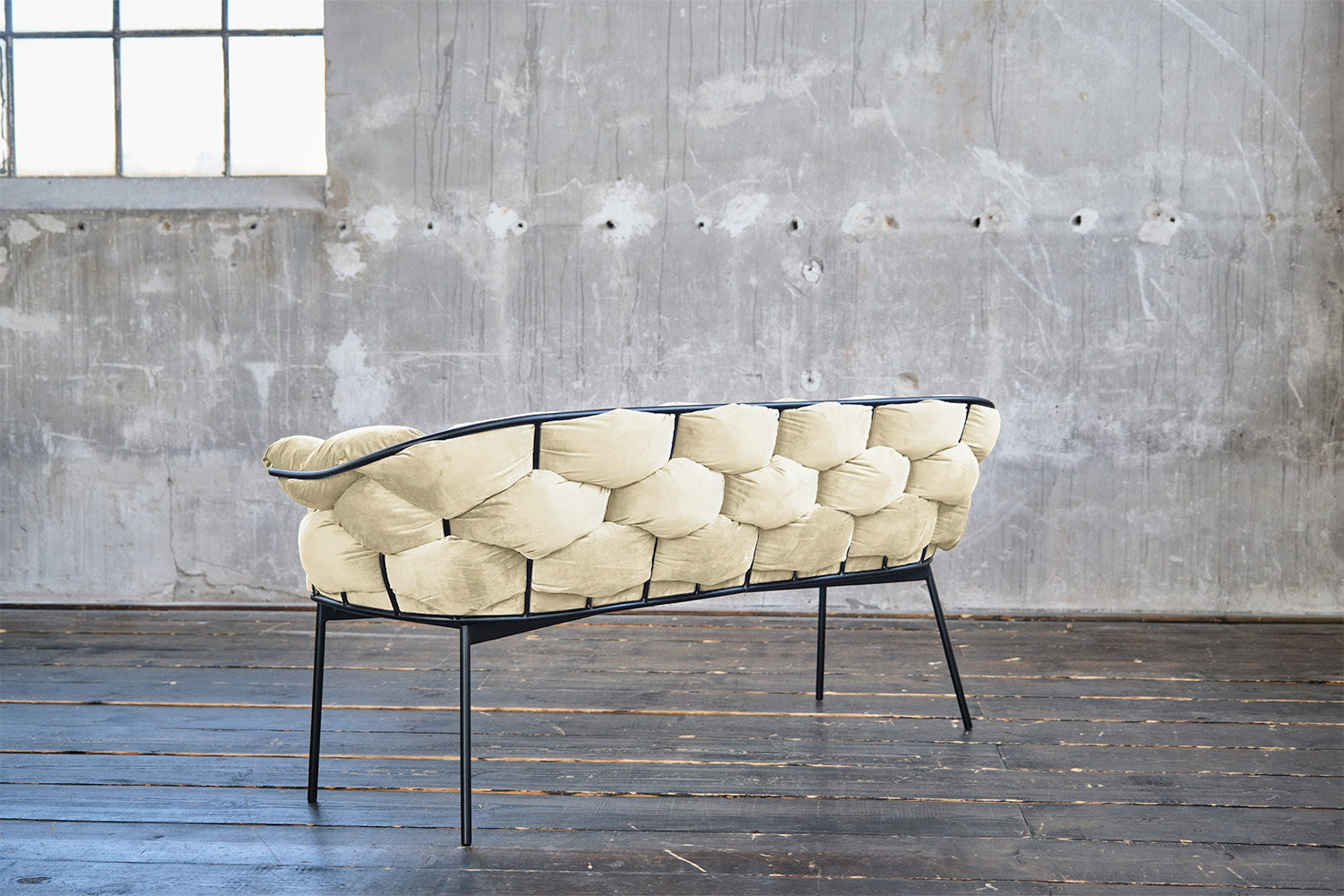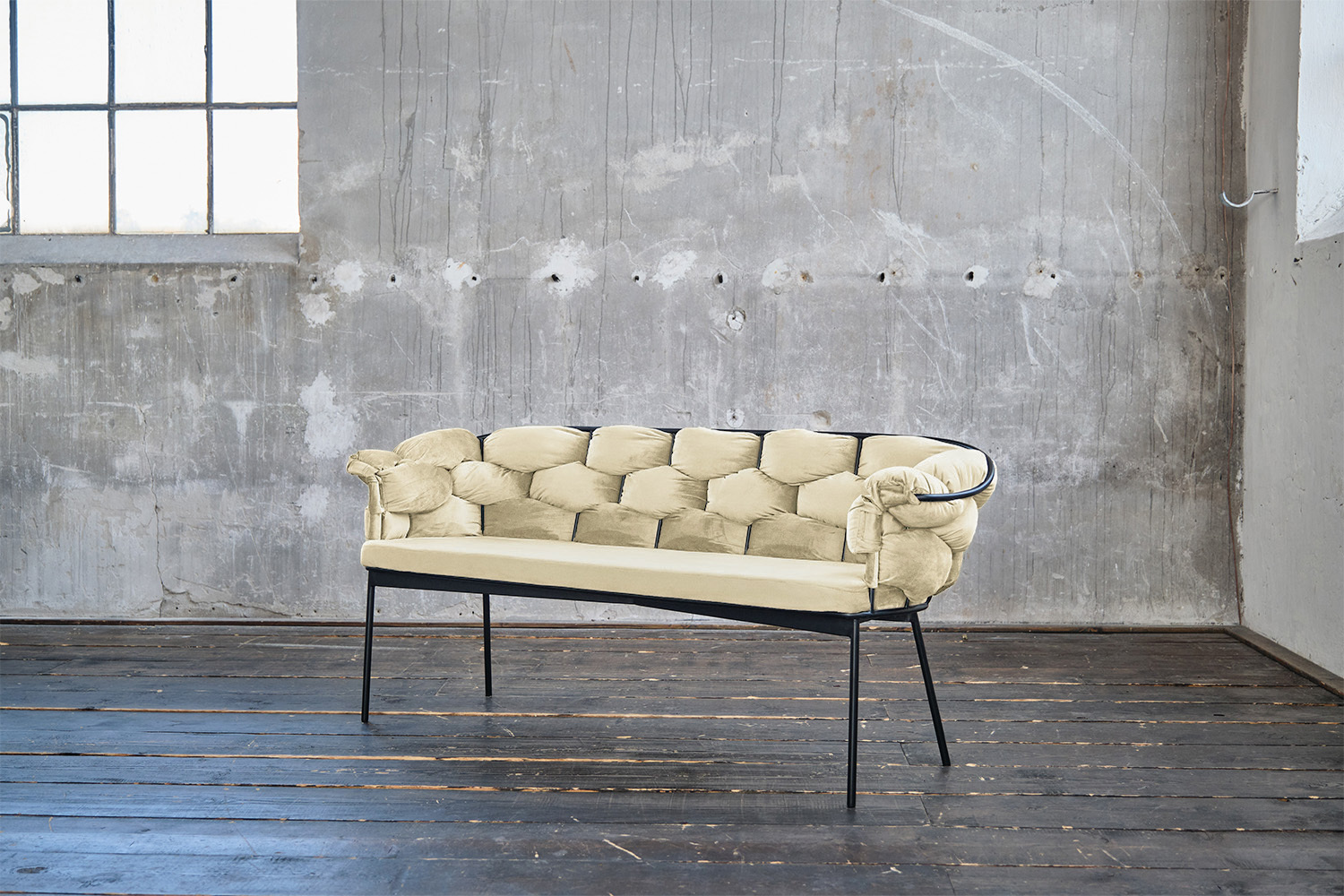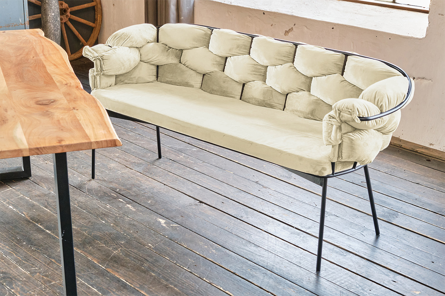 B-Ware KAWOLA Bank MONTY Sitzbank 240cm Velvet cremeweiß