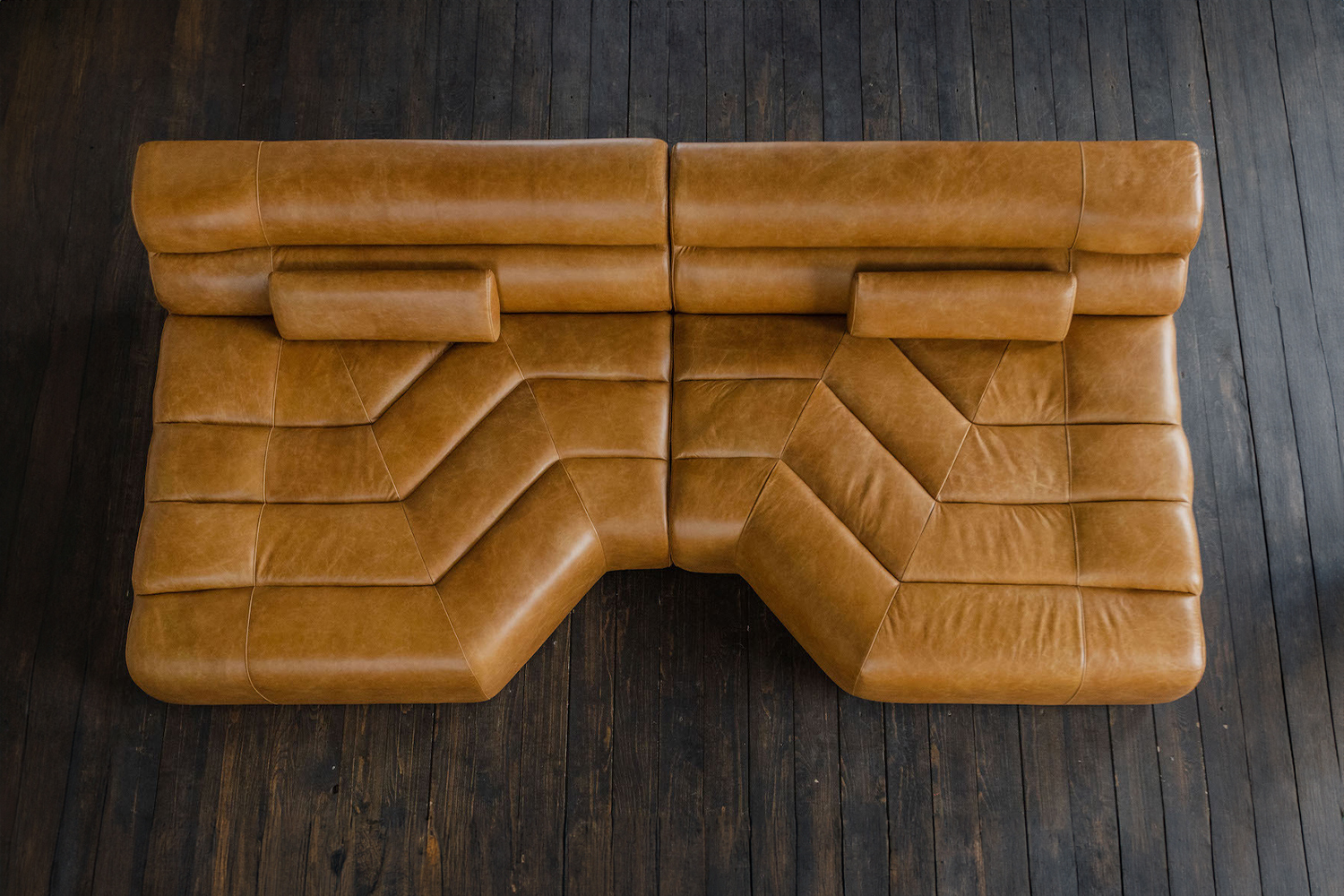 Das Sofa TARA ist eine komfortable Wohnlandschaft für Designliebhaber und bietet großzügigen Platz zum Sitzen und Relaxen. Charakteristisch für die Optik des Sofas ist die Kubische Form der Sitzfläche, die in der Mitte schmal zusammenläuft. Tiefe Nähte in der Sitz- und Rückenfläche verleihen dem Big Sofa eine schlauchartige und sportliche Optik. Der Bezug aus hochwertigem Leder in einem angesagten cognacton betont die sportliche Eleganz des Sofas gelungen. Auf der großen Sitzfläche des XXL Sofas mit komfortabler Polsterung ist jede Menge Platz zum Relaxen. Ob Sie sich alleine richtig lang machen oder einen Fernsehabend mit Ihren Freunden verbringen möchten - mit der Wohnlandschaft TARA stehen Ihnen alle Möglichkeiten offen - und das im ganz großen Stil!Produktdetails