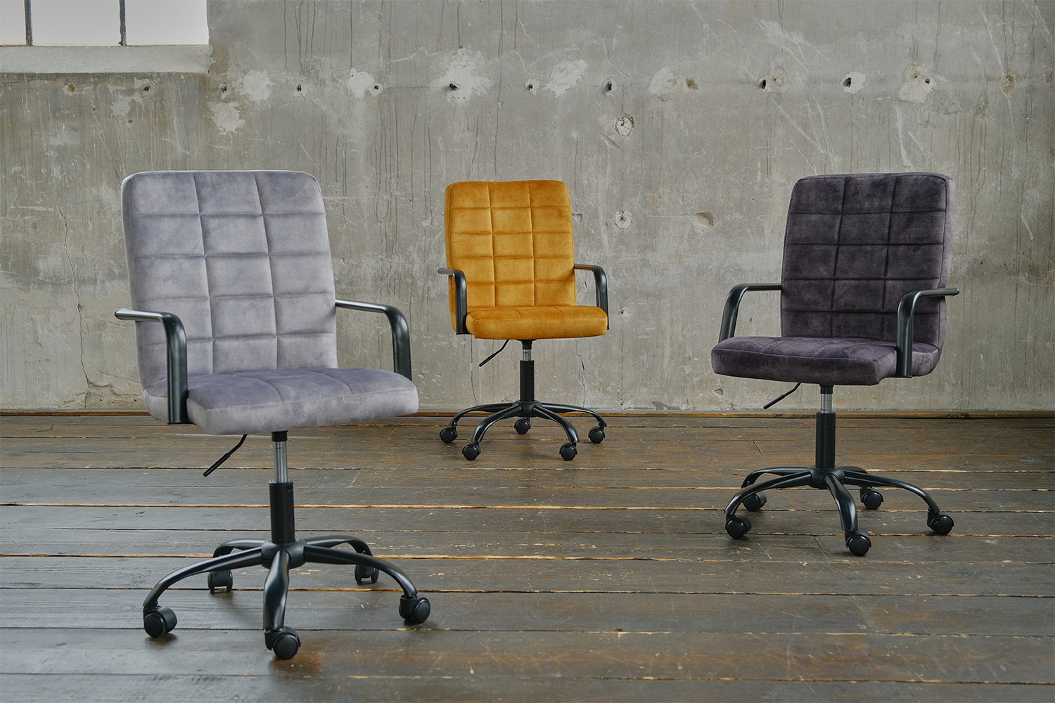 Lernen Sie den neuen KAWOLA Bürostuhl MERLE kennen! Mit seinem zeitlosen und gleichzeitig modernen Design fügt er sich nahtlos in jede Umgebung ein. Mit seiner bequemen, sich ergonomisch jeder Körperform anpassenden Polsterung bietet der Stuhl höchsten Sitzkomfort und macht auch das stundenlange Arbeiten am Computer zu einem Kinderspiel. Der Bezug aus angesagtem Velvet-Stoff verleiht ihm Klasse und macht ihn zum Blickfang in jedem Büro. Außerdem ist der Schreibtischstuhl MERLE natürlich höhenverstellbar, so dass Sie problemlos die für Sie passende Höhe einstellen können. Er steht auf einem hochwertigen, 5-armigen Kunststoffkreuz mit Rollen, durch das er ein Höchstmaß sowohl an Stabilität als auch an Flexibilität erhält. Sie werden auch nach getaner Arbeit aus dem KAWOLA Stuhl MERLE gar nicht mehr aufstehen wollen!