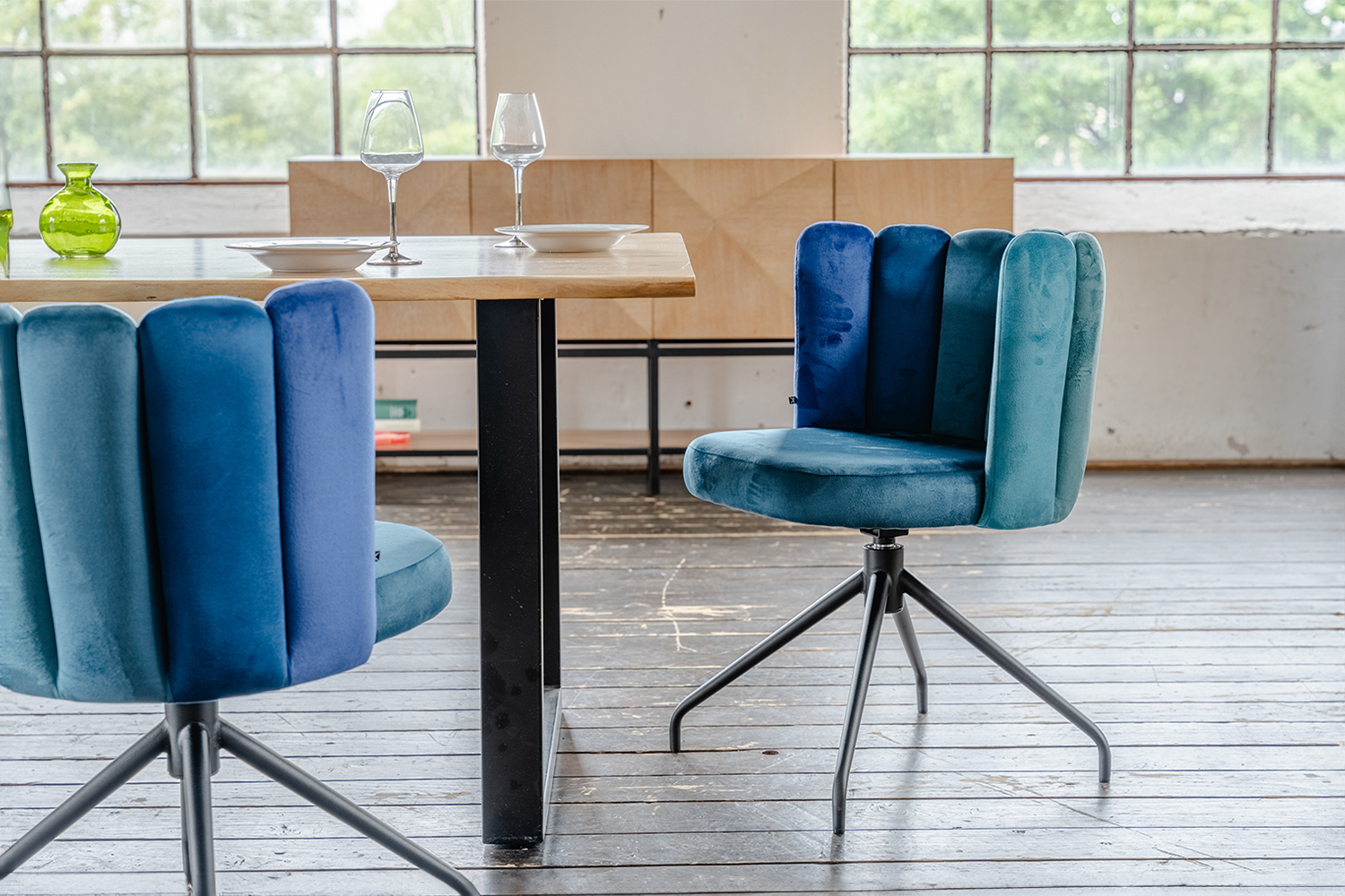 Ein echtes Highlight ist das formschöne 360° drehbare Gestell aus schwarz pulverbeschichtetem Metall, das nicht nur für Stabilität sorgt, sondern auch maximale Bewegungsfreiheit bietet. Die drehbare Konstruktion erleichtert das Aufstehen und Hinsetzen und macht den Stuhl zum idealen Begleiter – ob am Esstisch, im Homeoffice oder im Besprechungsraum.