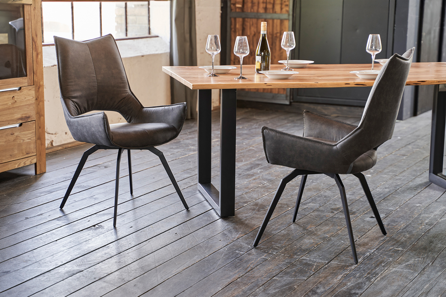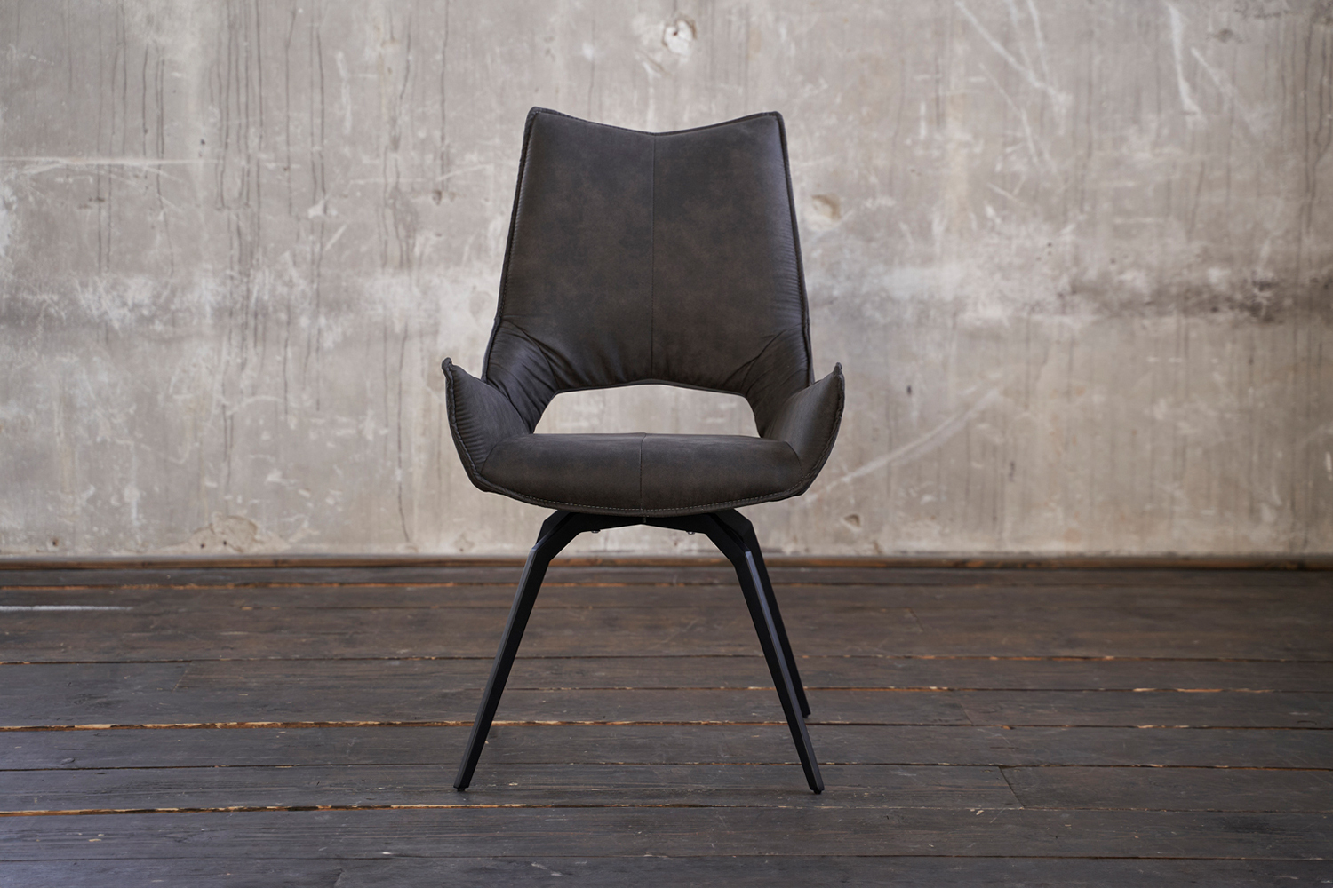 Der Esszimmerstuhl SIVO fällt direkt durch seine Interessante Formgebung ins Auge. Denn sowohl die angenehm gepolsterte Sitzschale, als auch die drehbaren angewinkelten Füße sind außergewöhnlich designt. In der sonst durchgängigen Sitzschale befindet sich eine Aussparung am unteren Teil des unteren Rückens, die den speziellen Look komplettiert. Der Stoffbezug des Drehsessels ist pflegeleicht und zugleich sehr angenehm in der Haptik. Der Polsterstuhl eignet sich wunderbar für den heimischen Ess- oder auch Arbeitsbereich, als Stuhl im Wartebereich oder auch als Besprechungsstuhl im Büro.