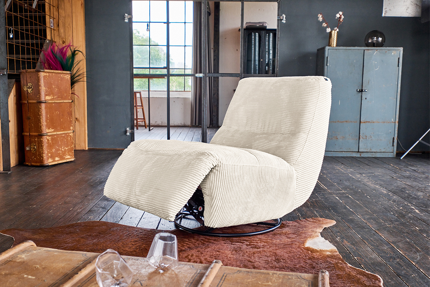 Entspannen Sie im CINE Relaxsessel von KAWOLA - ein exklusiver Begleiter für gemütliche Fernsehabende. Der hochwertige Cordbezug verleiht eine elegante Optik und angenehmes Hautgefühl.
