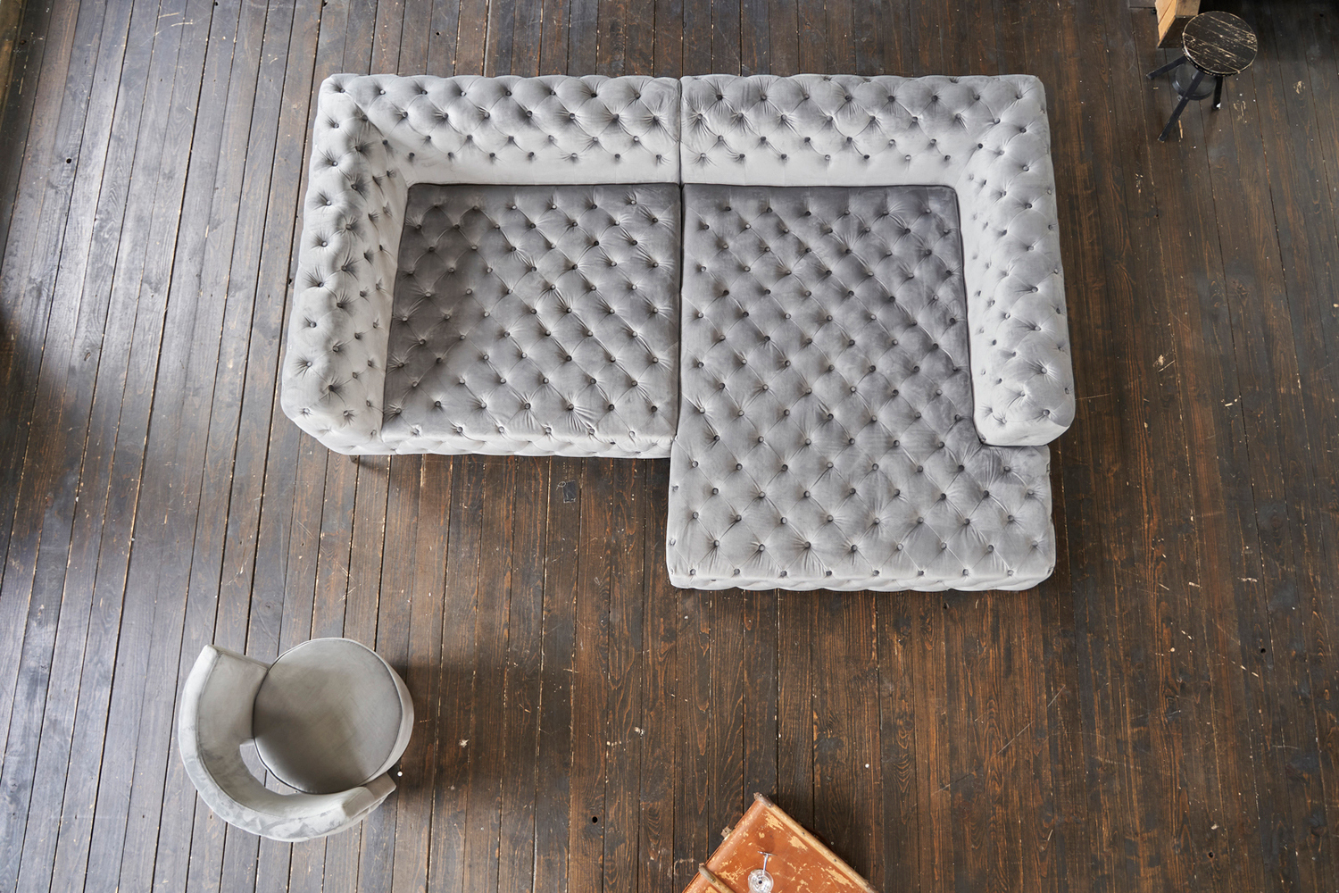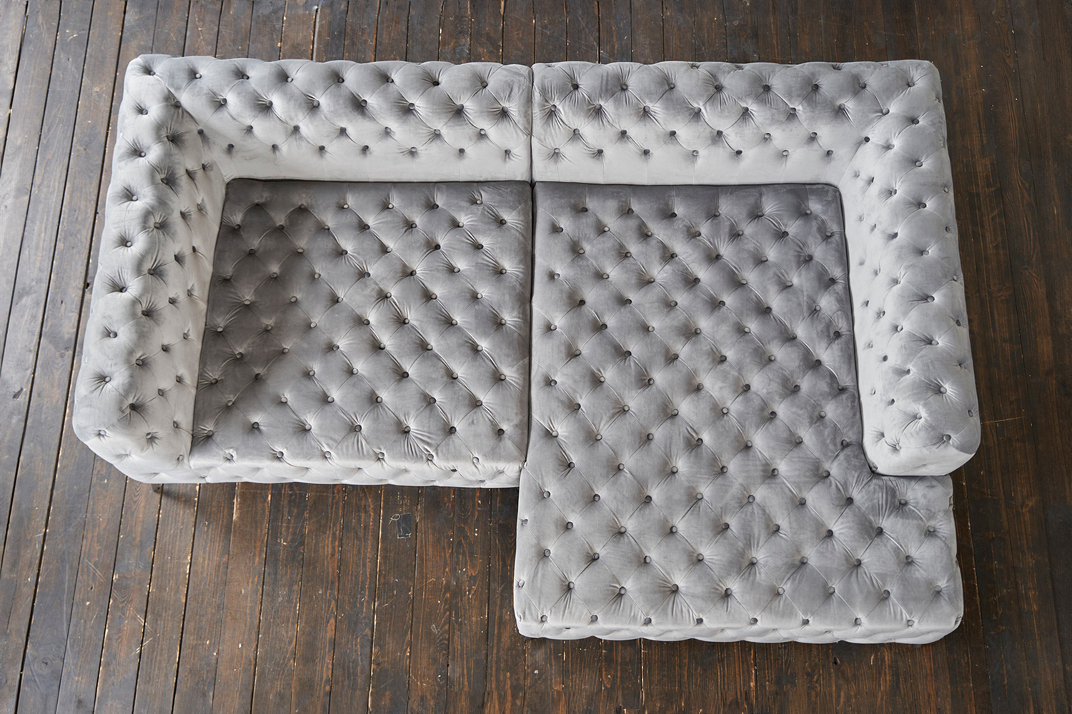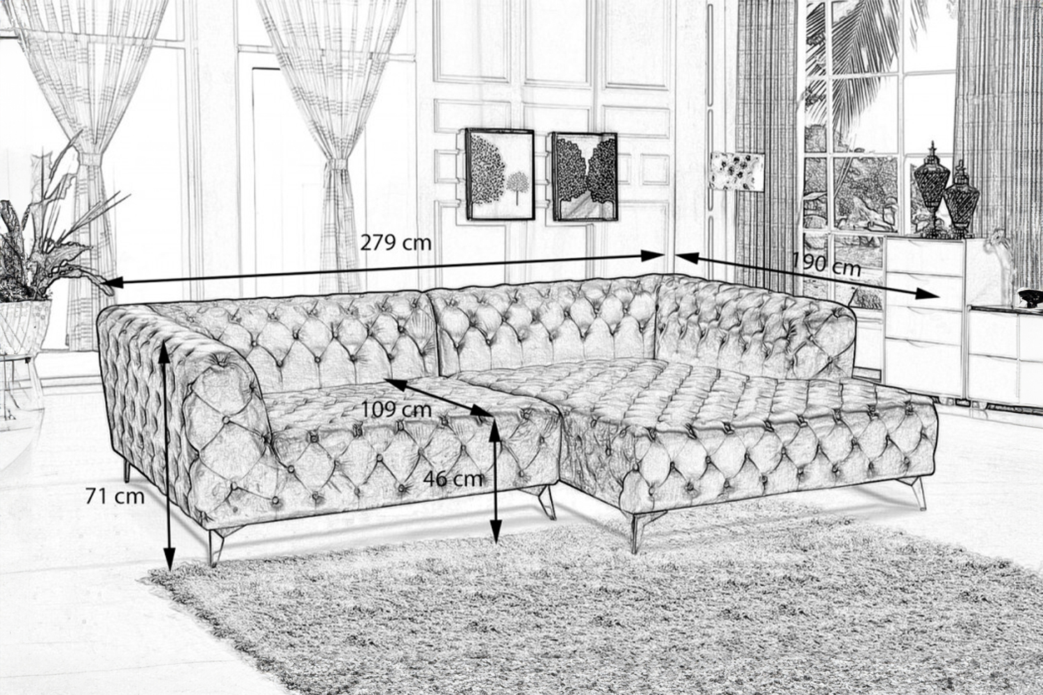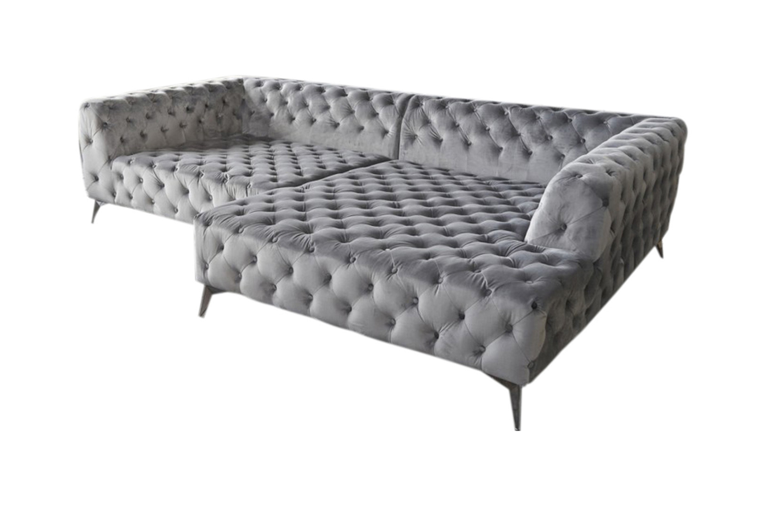Produktinformationen "B-Ware KAWOLA Sofa NARLA Ecksofa Chesterfield Stoff velvet silber Recamiere rechts"