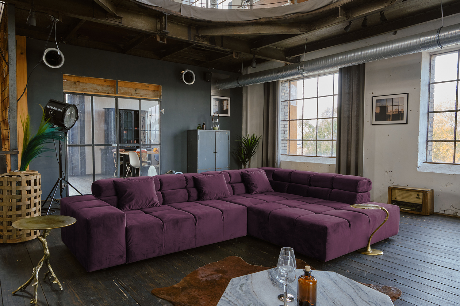 Produktinformationen "B-Ware KAWOLA Sofa NEVADA Ecksofa Velvet purple Recamiere rechts"
