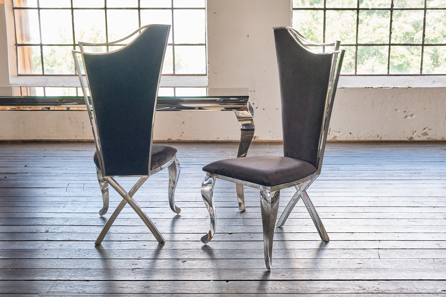 Bei diesen Stühlen handelt es sich um B-Ware aus Kundenrücksendungen, die gewisse kleinere Mängel aufweisen und daher von uns zu einem reduzierten Preis angeboten werden. Mögliche Mängel sind: Kratzer am Gestell, Druckstellen, leichte Verunreinigungen und Farbabweichungen auf der Polsterung sowie Risse im Unterbodenstoff. Bitte schauen Sie sich hierzu die Beispielbilder nach dem Hauptbild an.Der KAWOLA Esszimmerstuhl AMALIA ist ein Eyecatcher im eleganten Barock-Design. Hier können Sie sich bequem zurücklehnen und stilvoll speisen. Der Bezugsstoff aus Velvet ist sehr hochwertig verarbeitet, und die extravaganten Füße und das Detail an der Rückenlehne aus Edelstahl verleihen dem Stuhl seinen besonderen Look. Der Stuhl AMALIA sorgt mit seinem edlen Design für ein exklusives Wohngefühl.