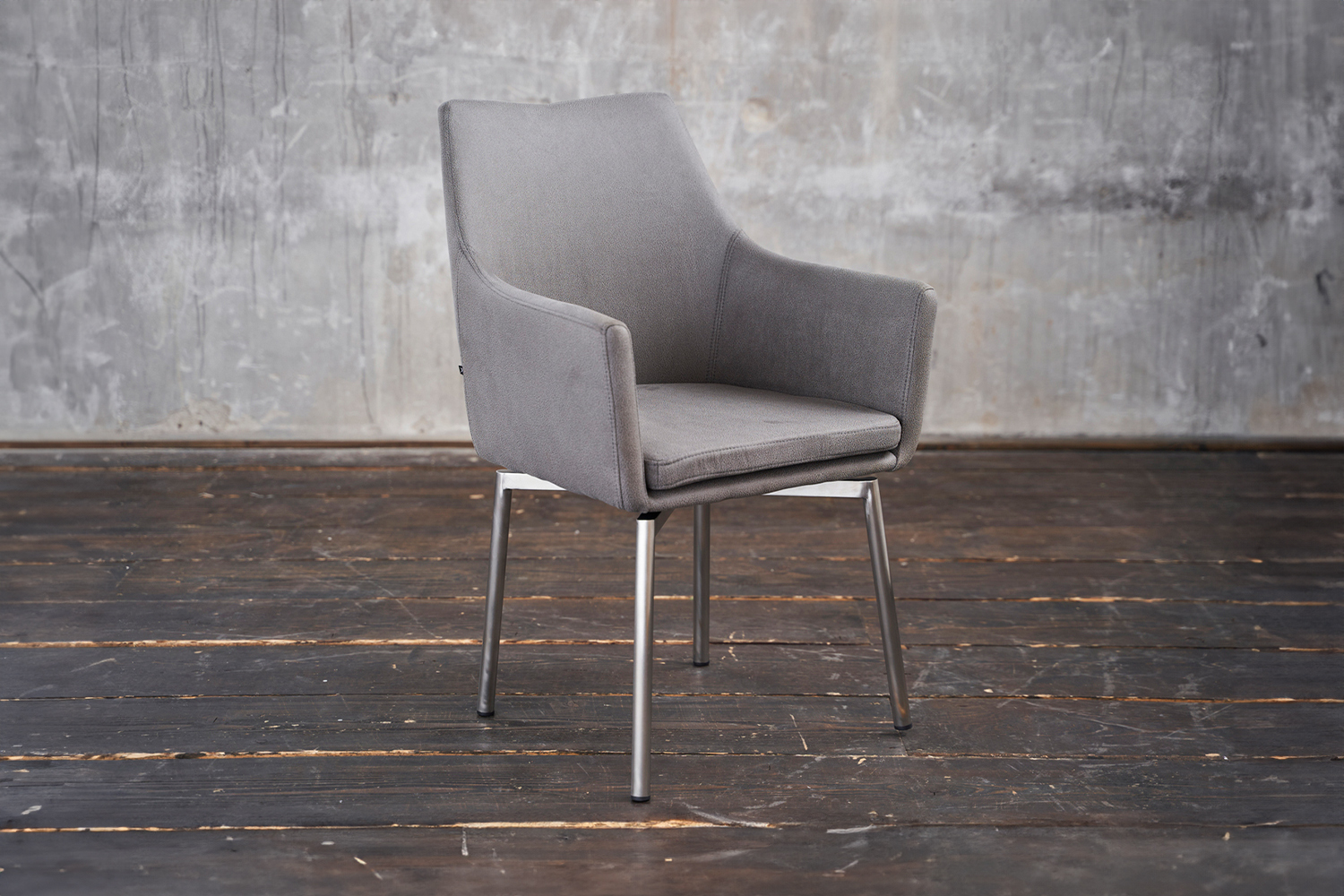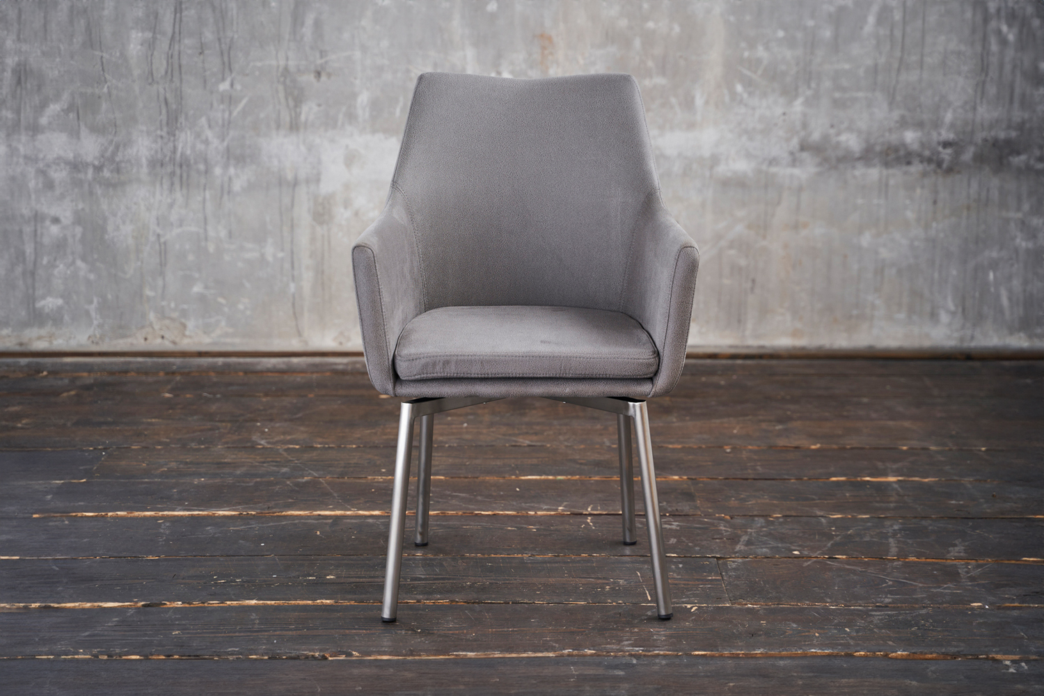 Bei diesem Stuhl handelt es sich um B-Ware aus einer Kundenrücksendung, die gewisse kleinere Mängel aufweist und daher von uns zu einem reduzierten Preis angeboten werden. Mögliche Mängel sind: Kratzer am Gestell, Druckstellen, leichte Verunreinigungen und Farbabweichungen auf der Polsterung sowie Risse im Unterbodenstoff. Bitte schauen Sie sich hierzu die Mängelbilder direkt nach dem Hauptbild an. Diese dienen lediglich der Veranschaulichung möglicher Mängel. Es handelt sich um allgemeine Beispielbilder, die nicht den vorliegenden Artikel darstellen. Der Artikel weist nicht zwangsläufig sämtliche aufgeführten Mängel auf. Auch die auf den Mängelbildern zu sehenden Bezugsstoffe und Farben beziehen sich nicht auf diesen Artikel.Der Stuhl Cali überzeugt durch sein schlichtes und elegantes Design. Der Esszimmerstuhl vereint das Klassische mit dem Modernen auf gekonnte Art und Weise. Durch sein klassisches und zugleich modernes Aussehen kann der Stuhl Cali in jedes bestehende Wohnambiente integriert werden. Das Gestell in Edelstahl harmonisiert hervorragend mit der Wahl des Bezuges und verleht dem Stuhl seinen modernen Charakter. Der Clou des Stuhls liegt darin, dass die Sitzschale über eine Drehfunktion verfügt. Ganz gleich ob im Esszimmer, im Konferenzraum oder im Wartebereich der Stuhl Cali macht überall eine gute Figur.