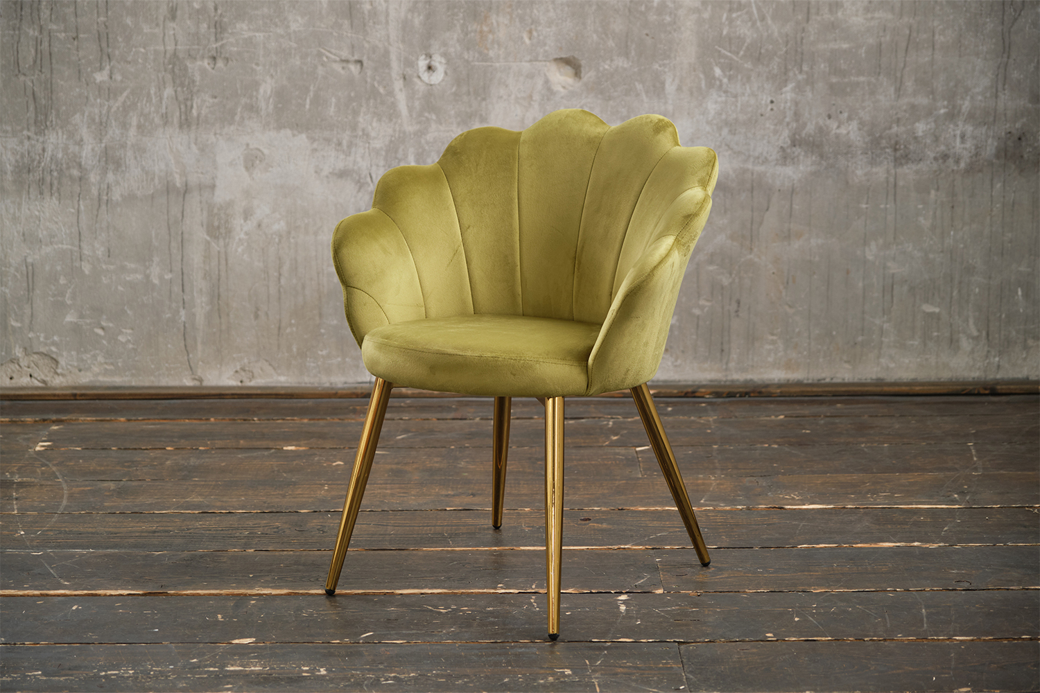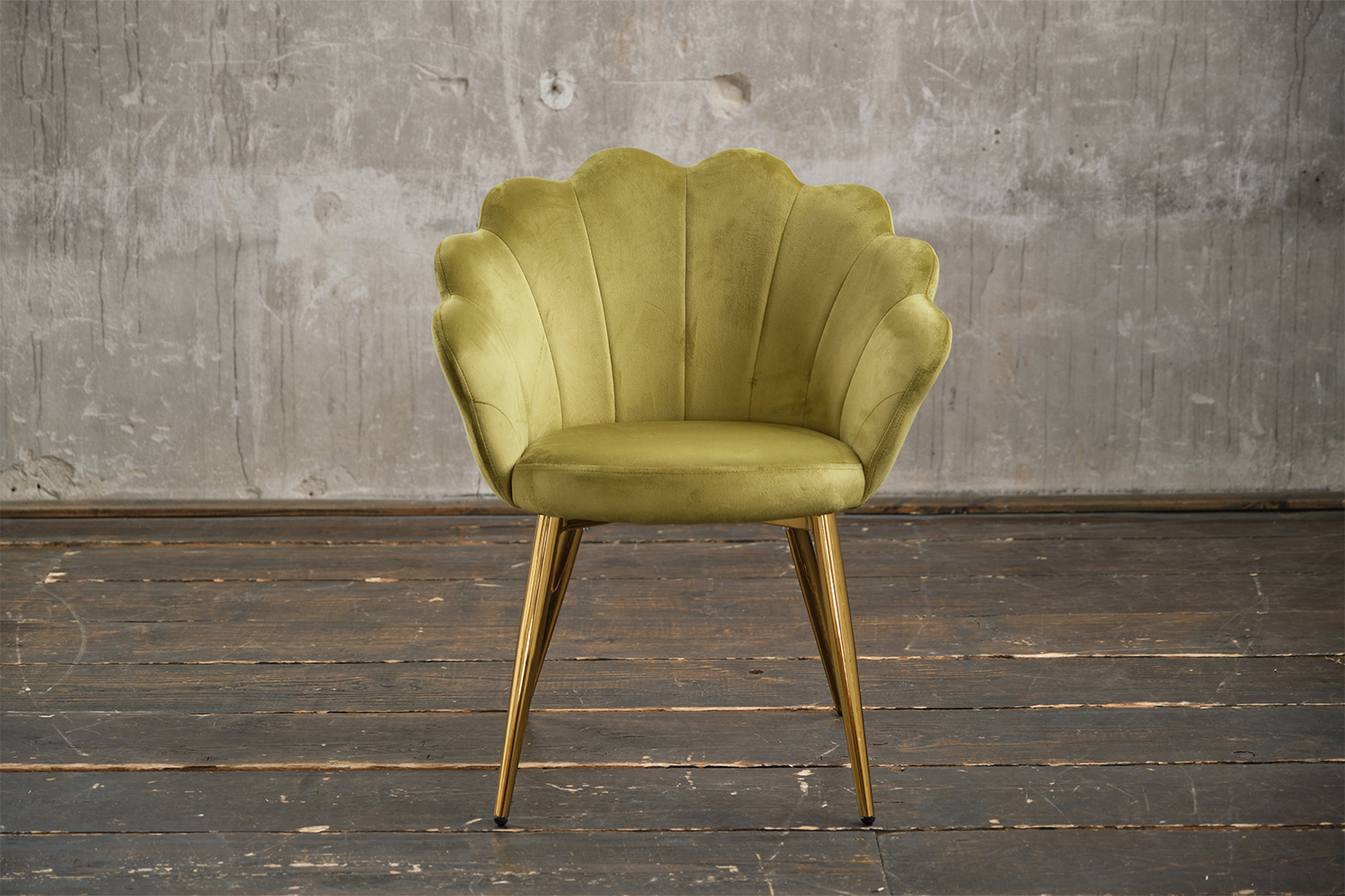 B-Ware_KAWOLA Stuhl CARLA Esszimmerstuhl Velvet grün Fuß gold