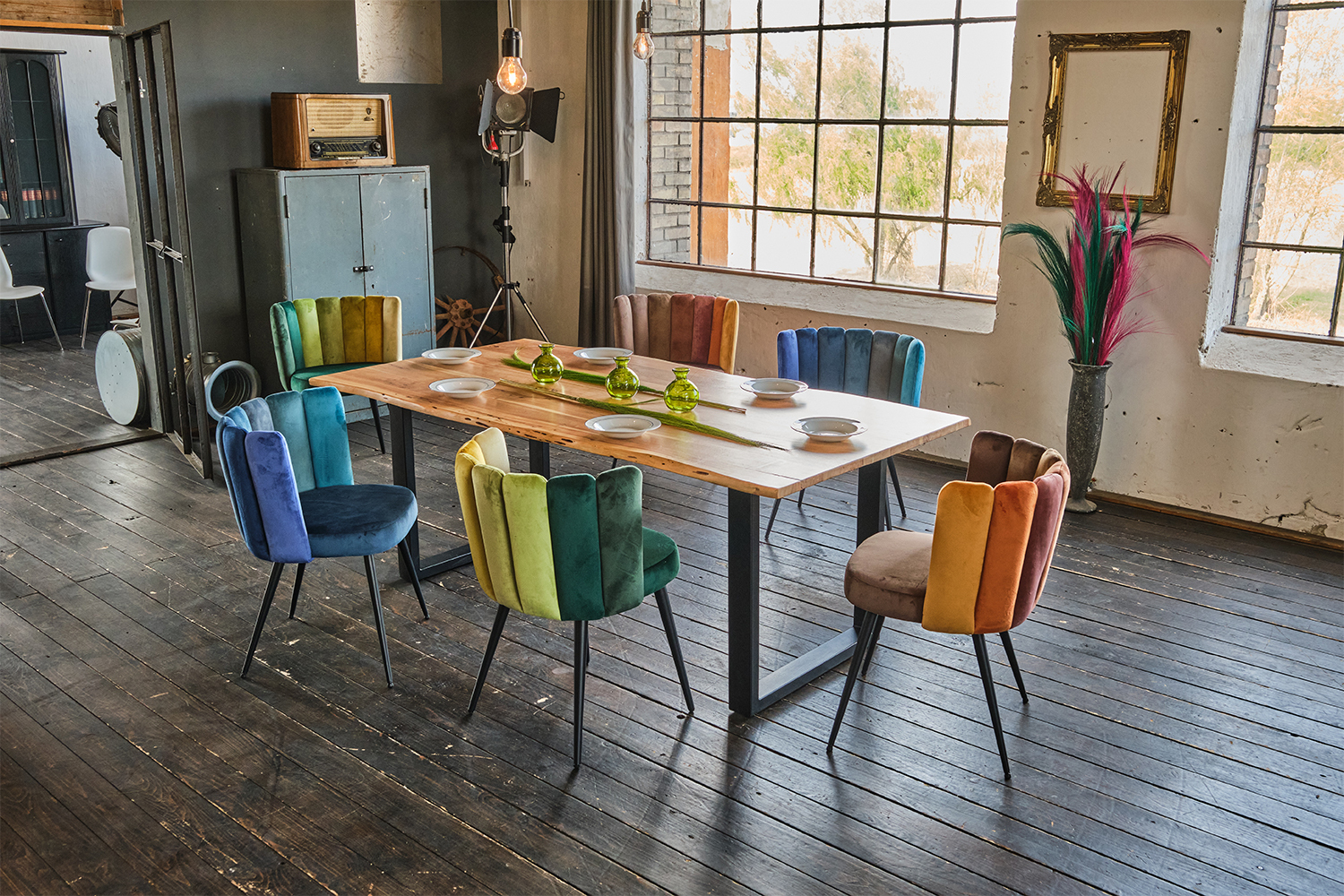 Bei diesen Stühlen handelt es sich um B-Ware aus Kundenrücksendungen, die gewisse kleinere Mängel aufweisen und daher von uns zu einem reduzierten Preis angeboten werden. Mögliche Mängel sind: Kratzer am Gestell, Druckstellen, leichte Verunreinigungen und Farbabweichungen auf der Polsterung sowie Risse im Unterbodenstoff. Bitte schauen Sie sich hierzu die Beispielbilder nach dem Hauptbild an.Der KAWOLA Stuhl JADA vereint angenehmen Sitzkomfort und modernes Wohndesign. Hier können Sie sich bequem zurücklehnen und stilvoll speisen. Der Bezugsstoff aus Velvet ist sehr hochwertig verarbeitet, und das aufwendig gestaltete Design der Rückenlehne in verschiedenen Farbtönen verleiht dem Stuhl seinen besonderen Look. Ob im Büro oder im Esszimmer - der Stuhl JADA eignet sich aufgrund seines modernen Designs für praktisch jeden Wohnbereich.