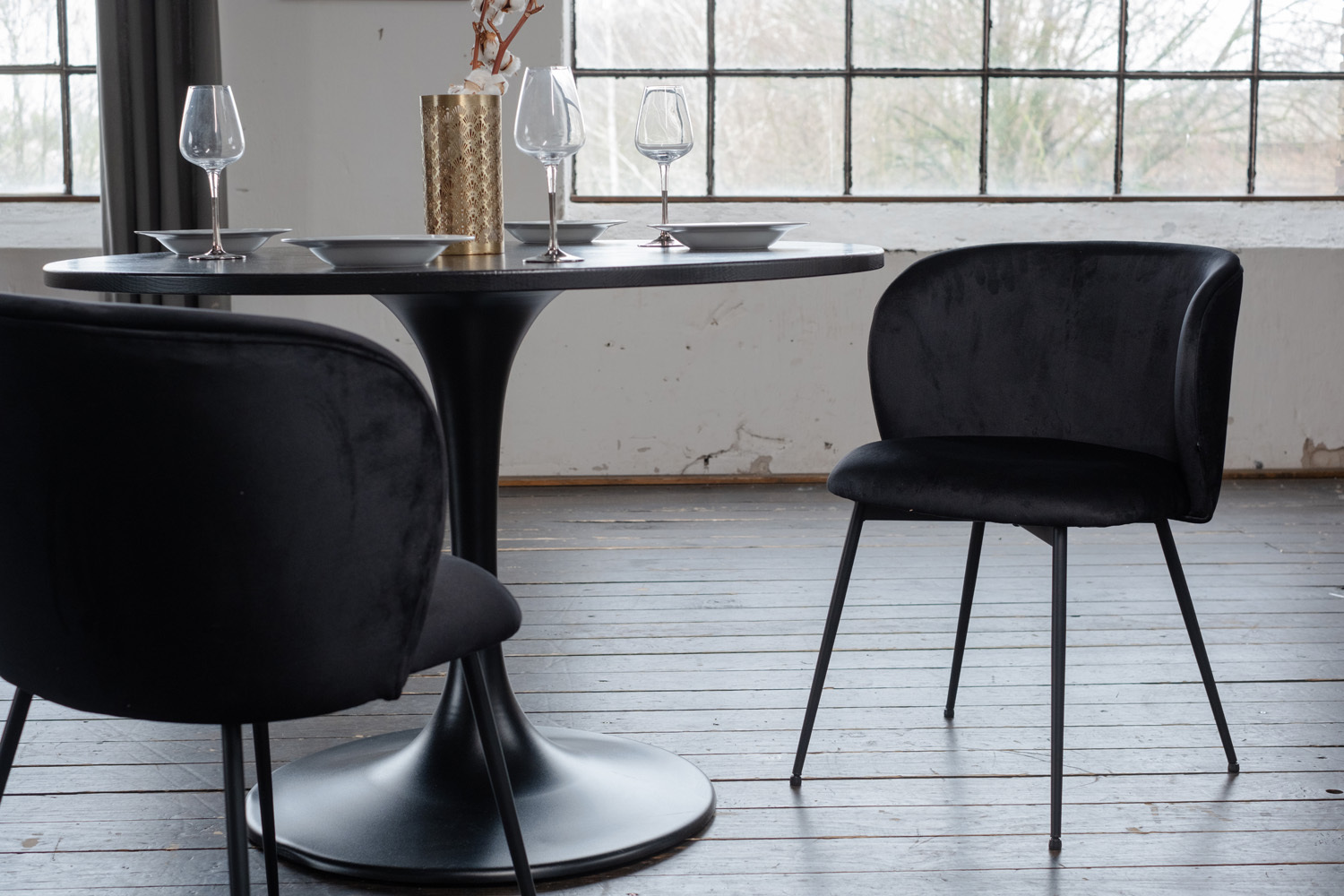 Entdecken Sie den LENA Esszimmerstuhl von KAWOLA - zeitlose Eleganz und exzellenter Komfort. Der hochwertige Velvet-Stoff verleiht stilvolle Akzente und lädt zu gemütlichen Stunden am Esstisch ein.