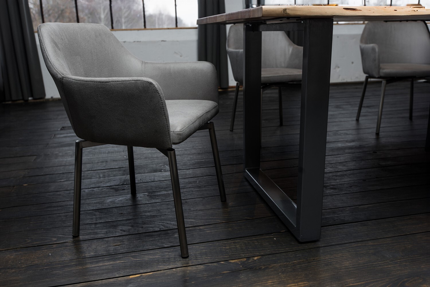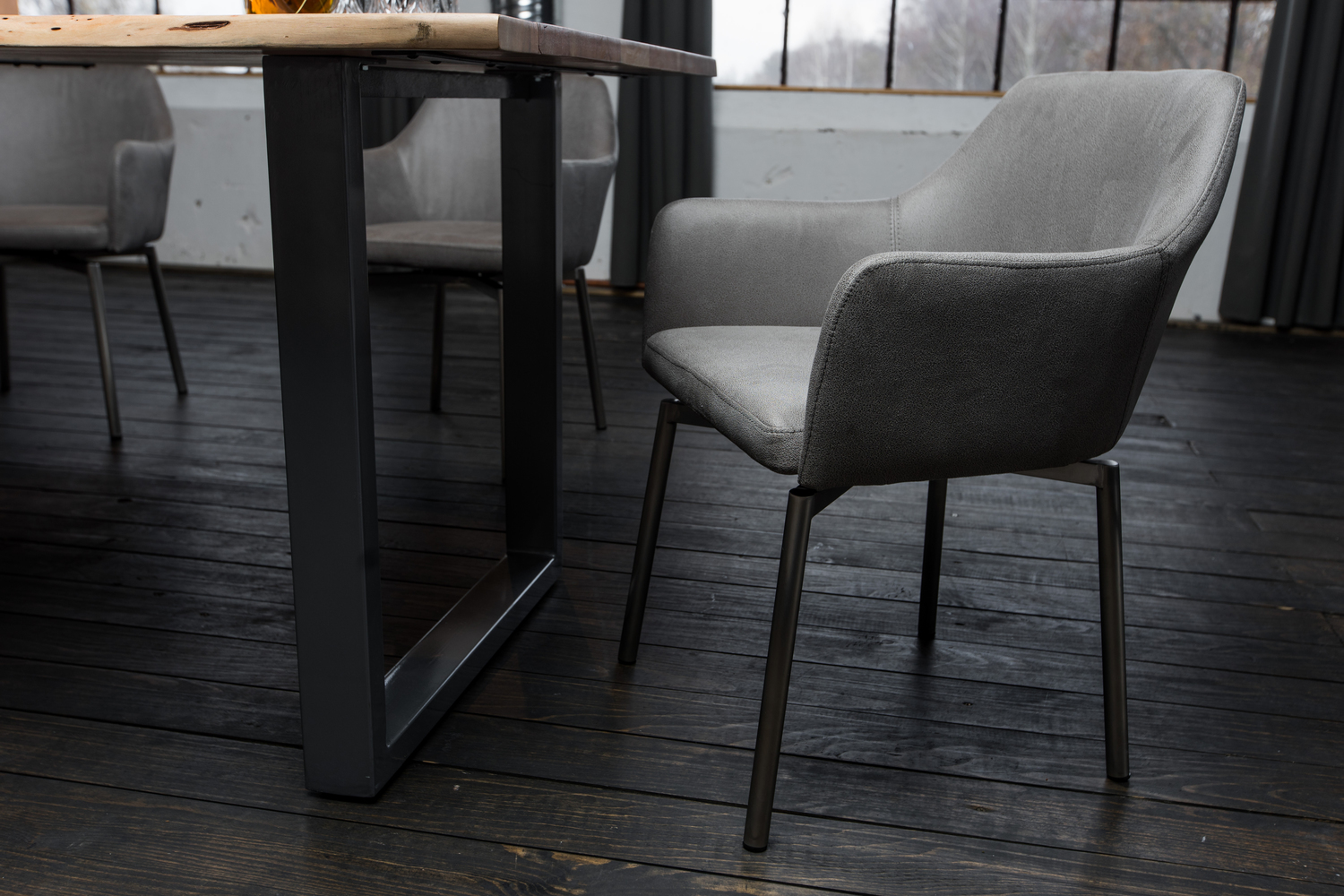 Der Stuhl Loui überzeugt durch sein schlichtes und elegantes Design. Der Esszimmerstuhl vereint das Klassische mit dem Modernen auf gekonnte Art und Weise. Durch sein klassisches und zugleich modernes Aussehen kann der Stuhl Loui in jedes bestehende Wohnambiente integriert werden. Das Gestell in Edelstahl harmonisiert hervorragend mit der Wahl des Bezuges und verleht dem Stuhl seinen modernen Charakter. Der Bezug in Microfaser ist pflegeleicht und Verschmutzungen können mit einem feuchten Tuch einfach entfernt werden. Durch die Wahl des Bezuges eignet sich der Stuhl mit Armlehnen für jeden Einsatzbereich; ganz gleich ob im Esszimmer, im Konferenzraum oder im Wartebereich der Stuhl Loui macht überall eine gute Figur.