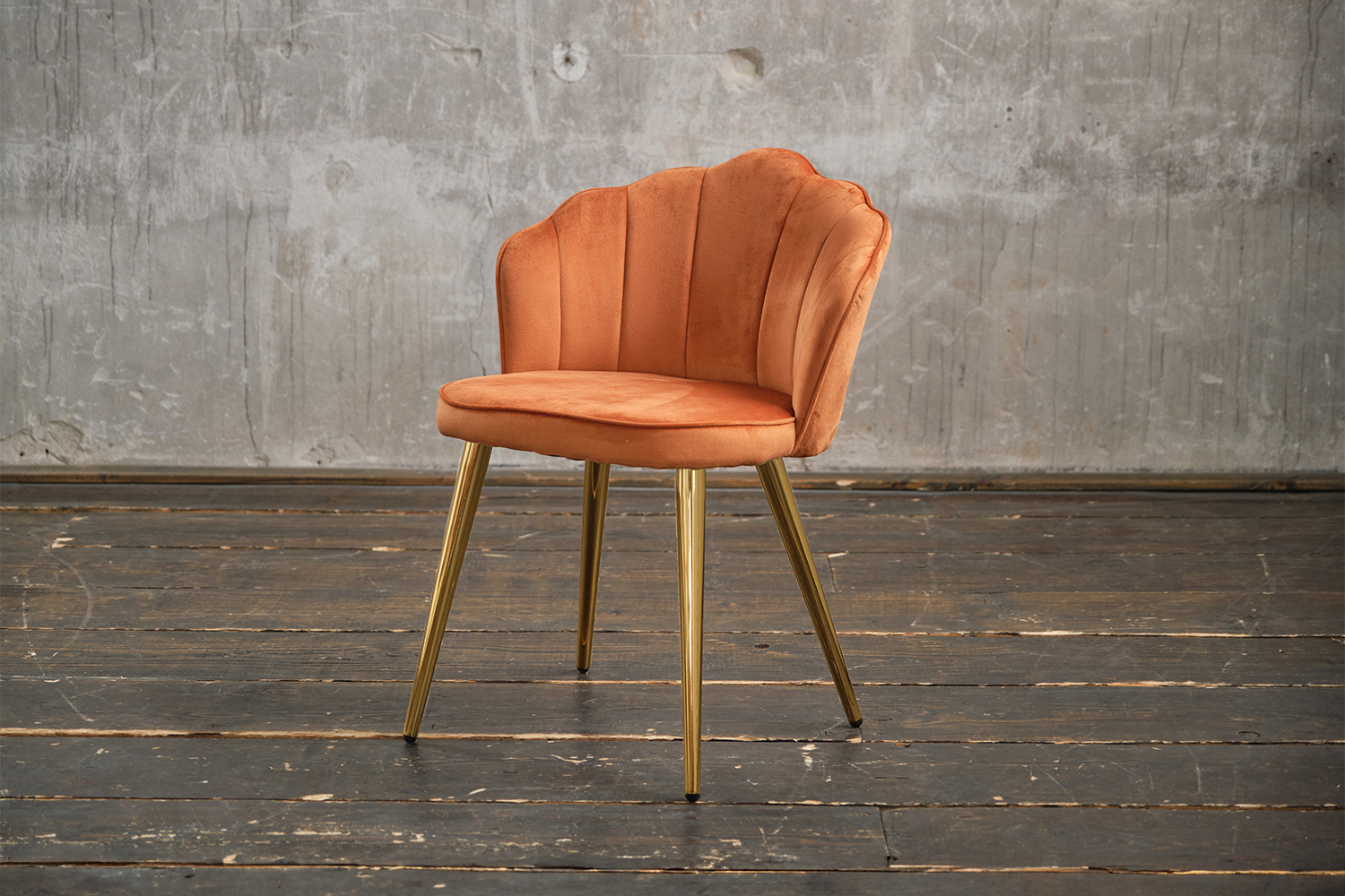 Produktinformationen "B-Ware KAWOLA Stuhl SALLY Esszimmerstuhl Velvet orange Fuß gold"