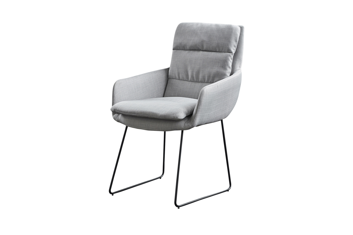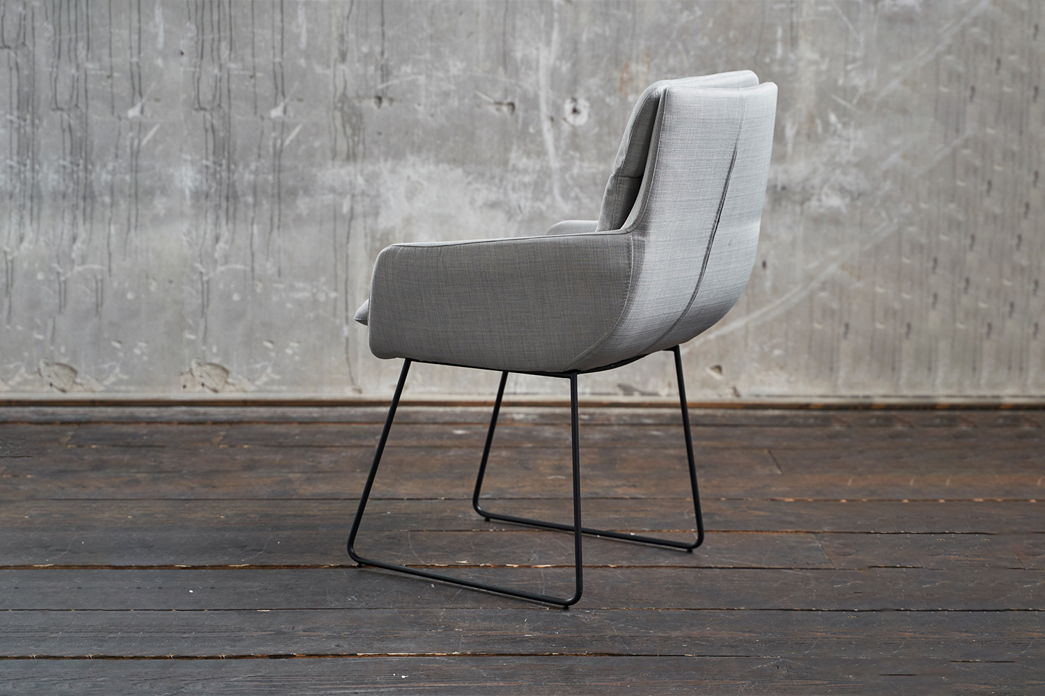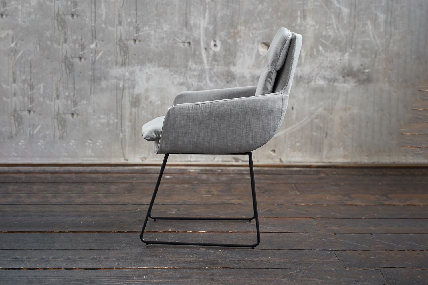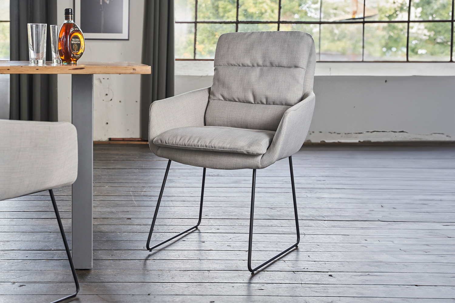 B-Ware KAWOLA Stuhl VINCE Esszimmersessel Stoff hellgrau Kufenfuß schwarz