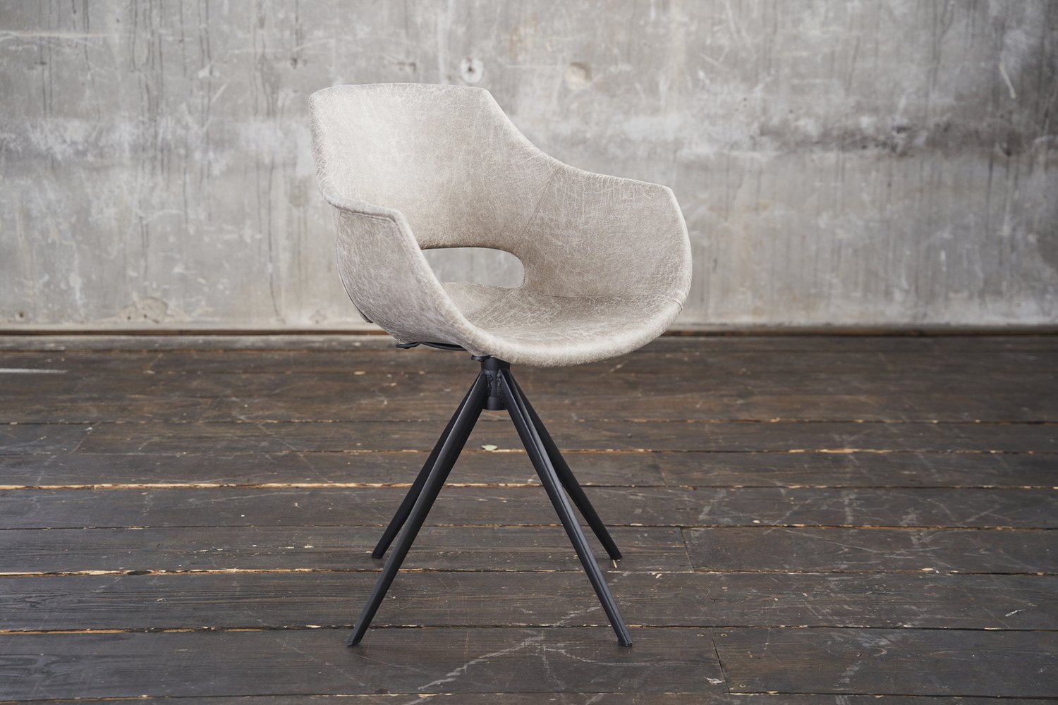 Bei diesen Stühlen handelt es sich um B-Ware aus Kundenrücksendungen, die gewisse kleinere Mängel aufweisen und daher von uns zu einem reduzierten Preis angeboten werden. Mögliche Mängel sind: Kratzer am Gestell, Druckstellen, leichte Verunreinigungen und Farbabweichungen auf der Polsterung sowie Risse im Unterbodenstoff. Bitte schauen Sie sich hierzu die Beispielbilder nach dem Hauptbild an.Der Stuhl ZAJA vereint industrielles und modernes Wohndesign. Hier können Sie sich bequem zurücklehnen und stilvoll speisen. Das Material ist sehr hochwertig verarbeitet und lässt sich problemlos reinigen. Der Stuhl ZAJA eignet sich für praktisch jeden Wohnbereich. Ob nun am Schreibtisch oder im Esszimmer überall macht der Stuhl aufgrund seines modernen Designs eine hervorragende Figur. Hier steht gemütlichen Stunden zum Arbeiten oder für die Freizeit nichts mehr im Wege. Das Highlight des Stuhls ist aber die Drehfunktion, mit der sich die Sitzposition um 360 Grad drehen lässt.