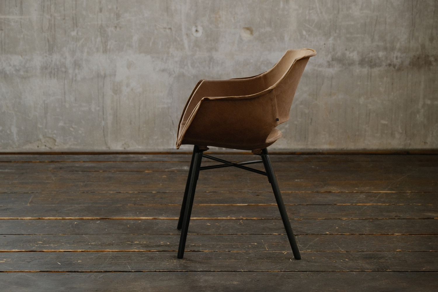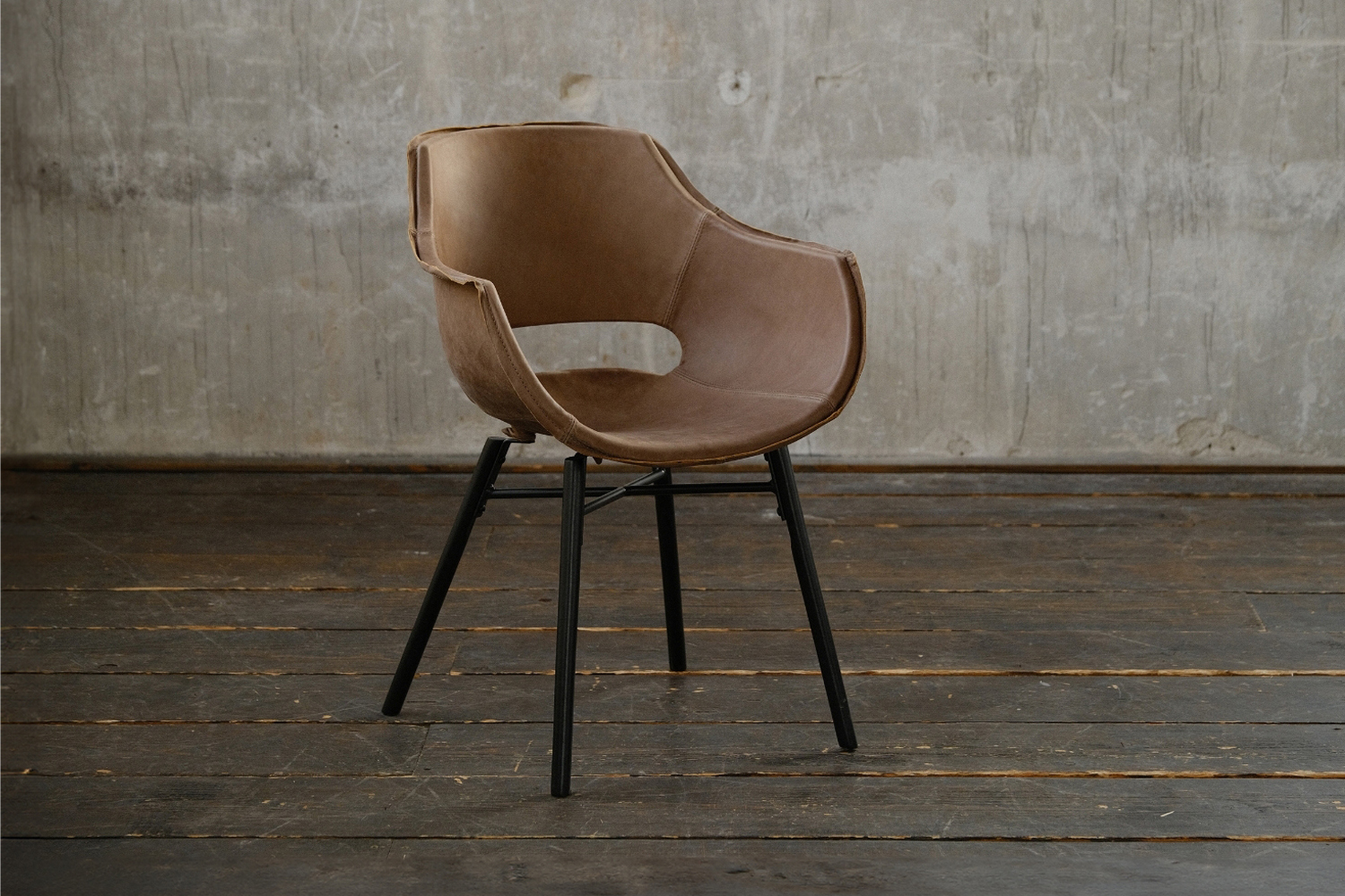 Der Stuhl ZAJA vereint industrielles und modernes Wohndesign. Hier können Sie sich bequem zurücklehnen und stilvoll speisen. Die Sitzschale ist in der Farbe sand-braun bezogen. Das hochwertige Rindsleder ist sehr strapazierfähig, pflegeleicht und fällt vor allem durch seine angenehme Haptik auf. Ein weiteres Highlight sind die offenen Nähte die den industriellen Vibe des Sitzmöbels unterstreichen.