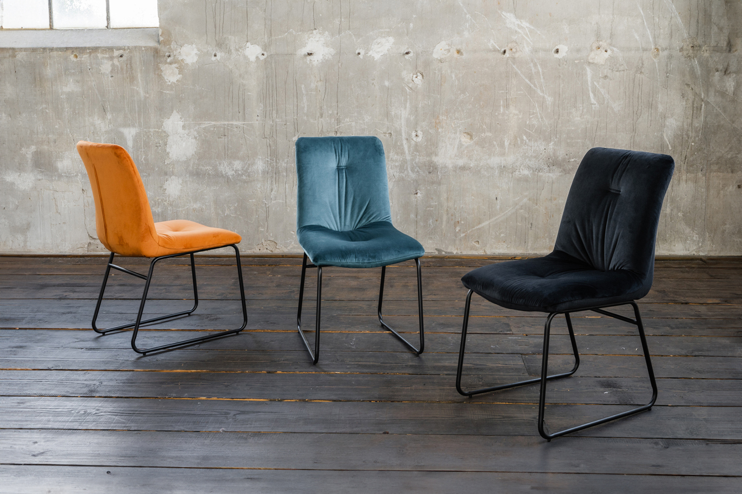 Der elegante Stuhl ZITA von KAWOLA verleiht jedem Raum etwas modernes. Die Kombination des hochwertigen, samtartigen Stoffs der Sitzschale mit den schwarzen, kufenförmigen Metallfüßen ergibt ein stilvolles Gesamtbild. Nicht nur als Esszimmerstuhl oder im Konferenzraum macht sich dieser Polsterstuhl gut, denn auch in einem Wartebereich bietet er sich als Komfortable Sitzlösung an und beweist Langlebigkeit. Form und Polsterung des Stuhls sorgen für einen angenehmen Sitzkomfort. Stuhl ZITA ist immer eine gute Wahl.