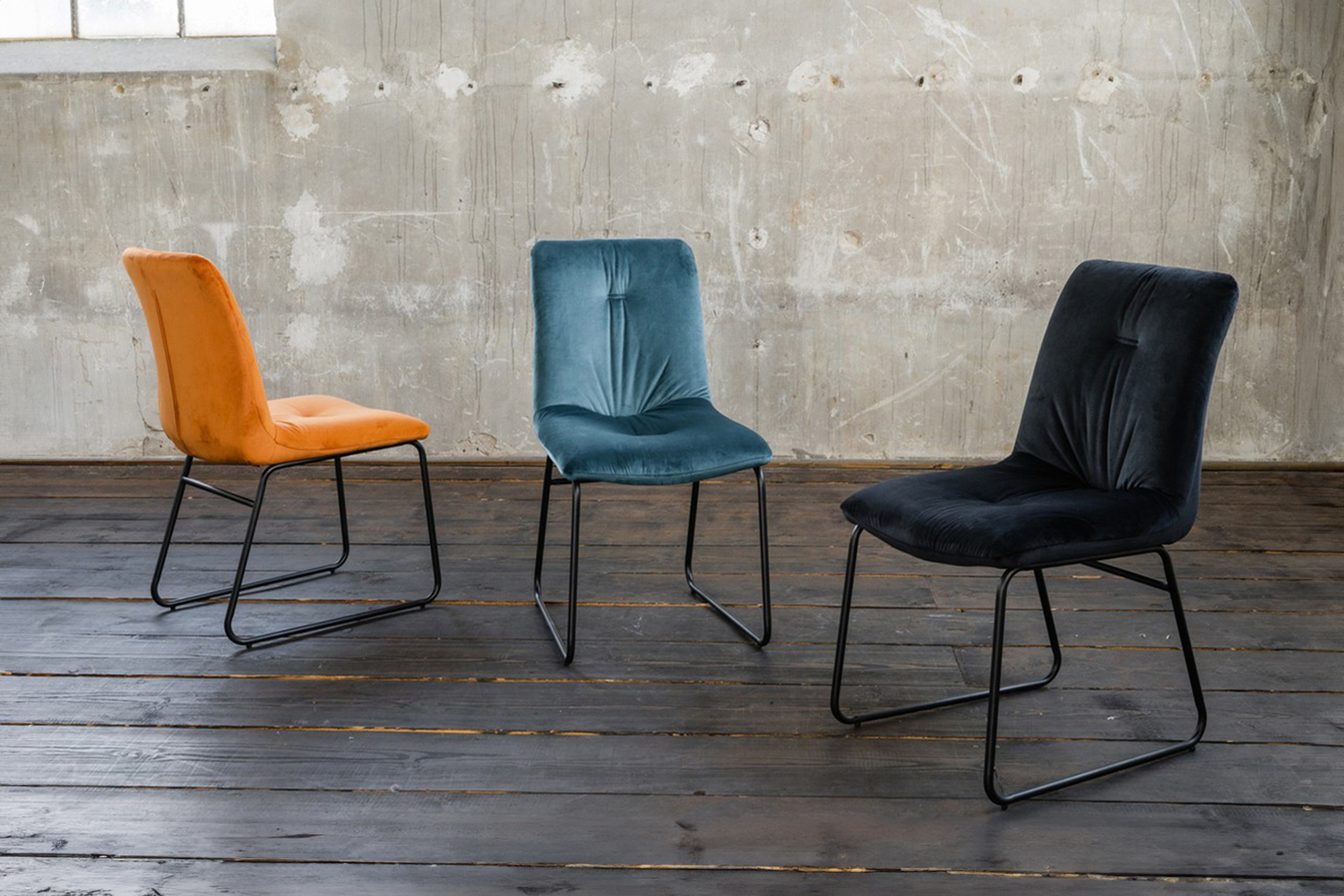 Der elegante Stuhl ZITA von KAWOLA verleiht jedem Raum etwas modernes. Die Kombination des hochwertigen, samtartigen Stoffs der Sitzschale mit den schwarzen, kufenförmigen Metallfüßen ergibt ein stilvolles Gesamtbild. Nicht nur als Esszimmerstuhl oder im Konferenzraum macht sich dieser Polsterstuhl gut, denn auch in einem Wartebereich bietet er sich als Komfortable Sitzlösung an und beweist Langlebigkeit. Form und Polsterung des Stuhls sorgen für einen angenehmen Sitzkomfort. Stuhl ZITA ist immer eine gute Wahl.