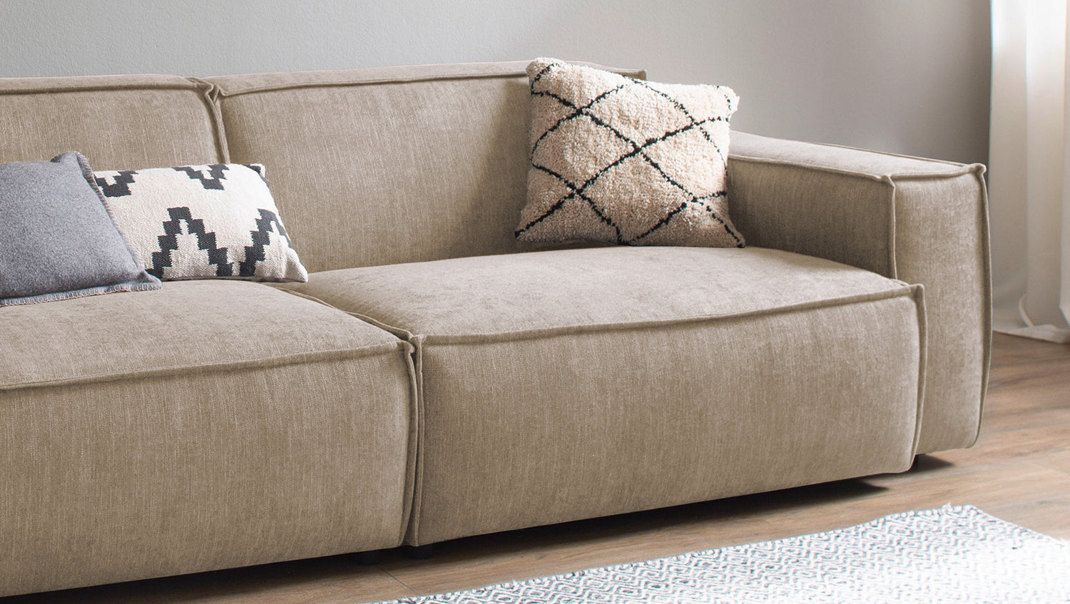 Der KAWOLA Sofa SAMU besticht durch seinen hervorragenden Sitzkomfort, der durch den äußerst weichen und legeren Polsteraufbau zustande kommt und zum Verweilen und Entspannen einlädt. Die Polsterung passt sich der Körperform an; Sitzabdrücke sowie Wellenbildung der Bezüge sind warentypisch. Seine moderne und urbane Form verleihen dem Sofa sein unverwechselbares Aussehen und bieten ausreichend Platz, um gemütliche Abende zu verbringen. Mit seinem zeitlosen Design fügt es sich nahtlos in jede Umgebung ein und macht auch frei im Raum stehend eine gute Figur. Wenn Sie Ihrem Wohnzimmer einen außergewöhnlichen Anstrich verleihen wollen, ist das Sofa SAMU definitiv das Richtige für Sie!