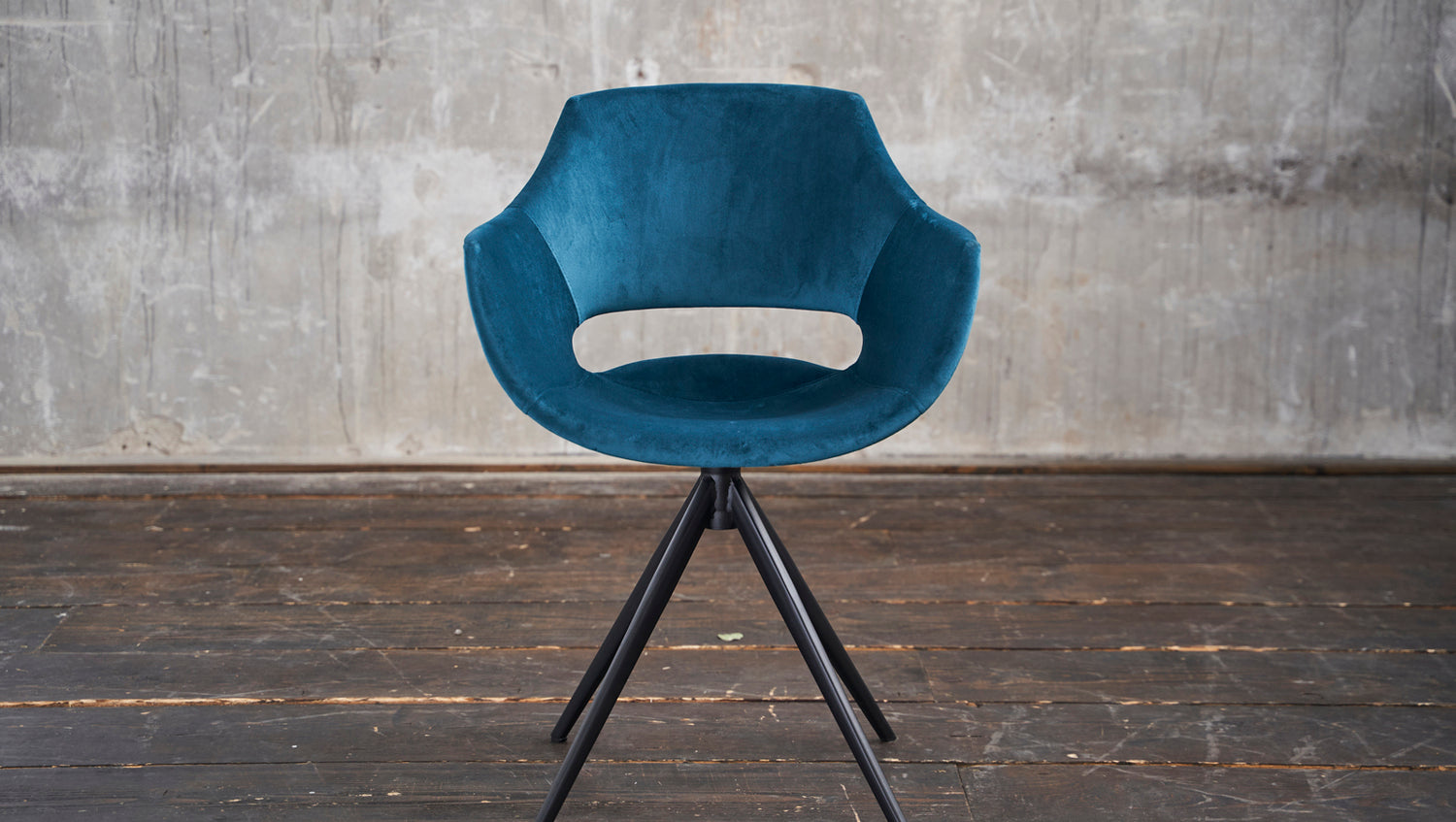KAWOLA Stuhl ZAJA Esszimmerstuhl Velvet drehbar petrol