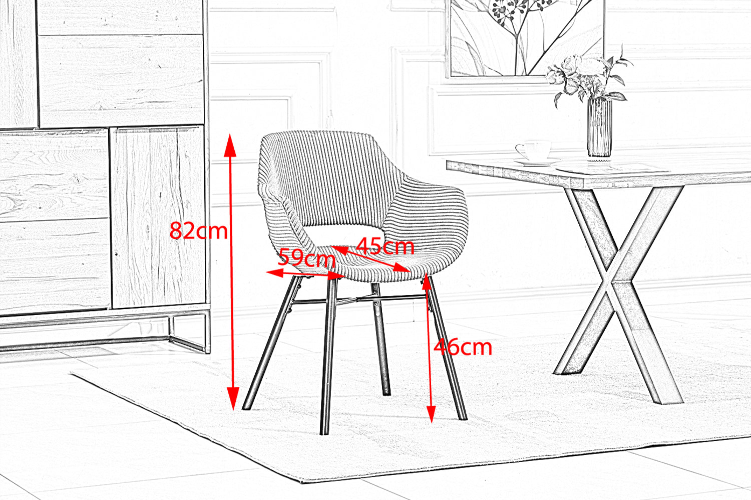 Bei diesem Stuhl handelt es sich um B-Ware aus einer Kundenrücksendung, die gewisse kleinere Mängel aufweist und daher von uns zu einem reduzierten Preis angeboten werden. Mögliche Mängel sind: Kratzer am Gestell, Druckstellen, leichte Verunreinigungen und Farbabweichungen auf der Polsterung sowie Risse im Unterbodenstoff. Bitte schauen Sie sich hierzu die Mängelbilder direkt nach dem Hauptbild an. Diese dienen lediglich der Veranschaulichung möglicher Mängel. Es handelt sich um allgemeine Beispielbilder, die nicht den vorliegenden Artikel darstellen. Der Artikel weist nicht zwangsläufig sämtliche aufgeführten Mängel auf. Auch die auf den Mängelbildern zu sehenden Bezugsstoffe und Farben beziehen sich nicht auf diesen Artikel. Der KAWOLA Esszimmerstuhl ZAJA vereint industrielles und modernes Wohndesign. Hier können Sie sich bequem zurücklehnen und stilvoll speisen. Der Bezug aus angesagtem Cord-Stoff ist sehr hochwertig verarbeitet und lässt sich problemlos reinigen. Der Stuhl ZAJA eignet sich für praktisch jeden Wohnbereich. Ob nun am Schreibtisch oder im Esszimmer - überall macht der Stuhl aufgrund seines modernen Designs eine hervorragende Figur. Die Stuhlbeine sind aus schwarz lackiertem Holz gefertigt und runden das Industrial Design perfekt ab. Hier steht gemütlichen Stunden zum Arbeiten oder für die Freizeit nichts mehr im Wege.