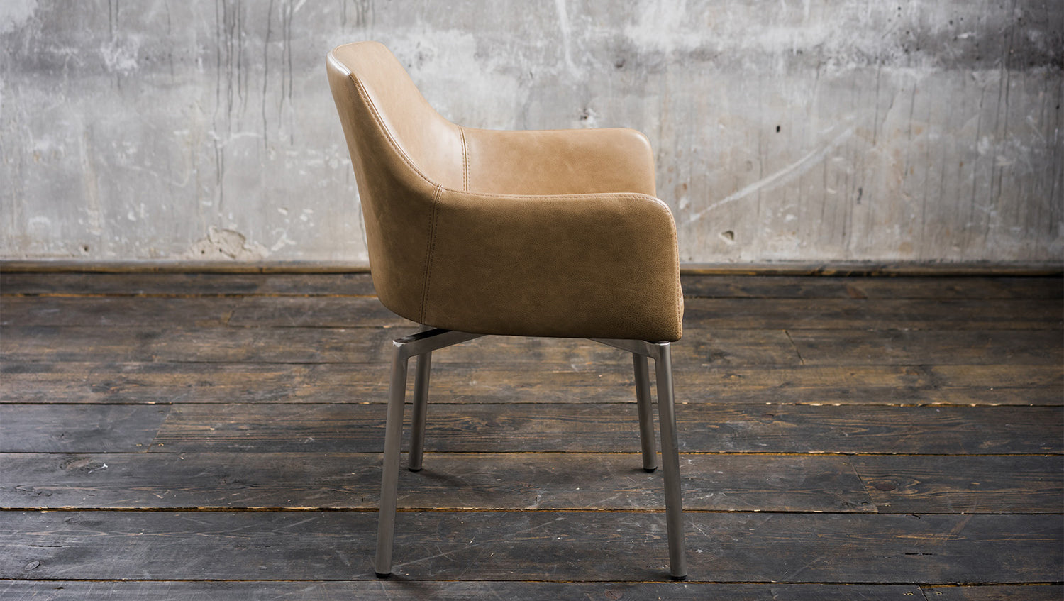 Bei diesem Stuhl handelt es sich um B-Ware aus einer Kundenrücksendung, die gewisse kleinere Mängel aufweist und daher von uns zu einem reduzierten Preis angeboten werden. Mögliche Mängel sind: Kratzer am Gestell, Druckstellen, leichte Verunreinigungen und Farbabweichungen auf der Polsterung sowie Risse im Unterbodenstoff. Bitte schauen Sie sich hierzu die Mängelbilder direkt nach dem Hauptbild an. Diese dienen lediglich der Veranschaulichung möglicher Mängel. Es handelt sich um allgemeine Beispielbilder, die nicht den vorliegenden Artikel darstellen. Der Artikel weist nicht zwangsläufig sämtliche aufgeführten Mängel auf. Auch die auf den Mängelbildern zu sehenden Bezugsstoffe und Farben beziehen sich nicht auf diesen Artikel. Der Stuhl Loui überzeugt durch sein schlichtes und elegantes Design. Der Esszimmerstuhl vereint das Klassische mit dem Modernen auf gekonnte Art und Weise. Durch sein klassisches und zugleich modernes Aussehen kann der Stuhl Loui in jedes bestehende Wohnambiente integriert werden. Das Gestell in Edelstahl harmonisiert hervorragend mit der Wahl des Bezuges und verleiht dem Stuhl seinen modernen Charakter. Der Clou des Stuhls liegt darin, dass die Sitzschale über eine Drehfunktion verfügt. Der Bezug in Leder ist pflegeleicht und Verschmutzungen können mit einem feuchten Tuch einfach entfernt werden. Durch die Wahl des Bezuges eignet sich der Stuhl mit Armlehnen für jeden Einsatzbereich; ganz gleich ob im Esszimmer, im Konferenzraum oder im Wartebereich der Stuhl Loui macht überall eine gute Figur.