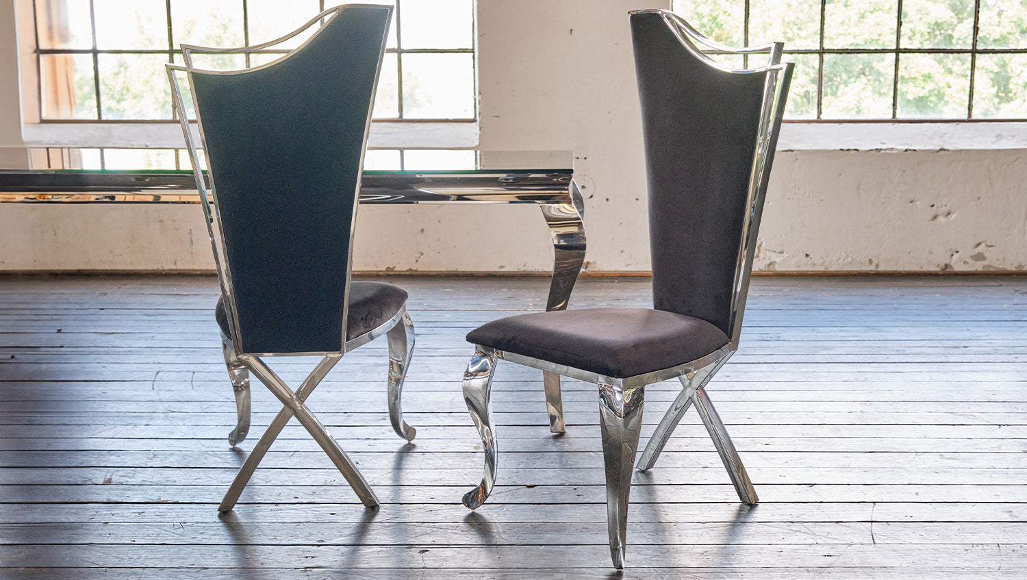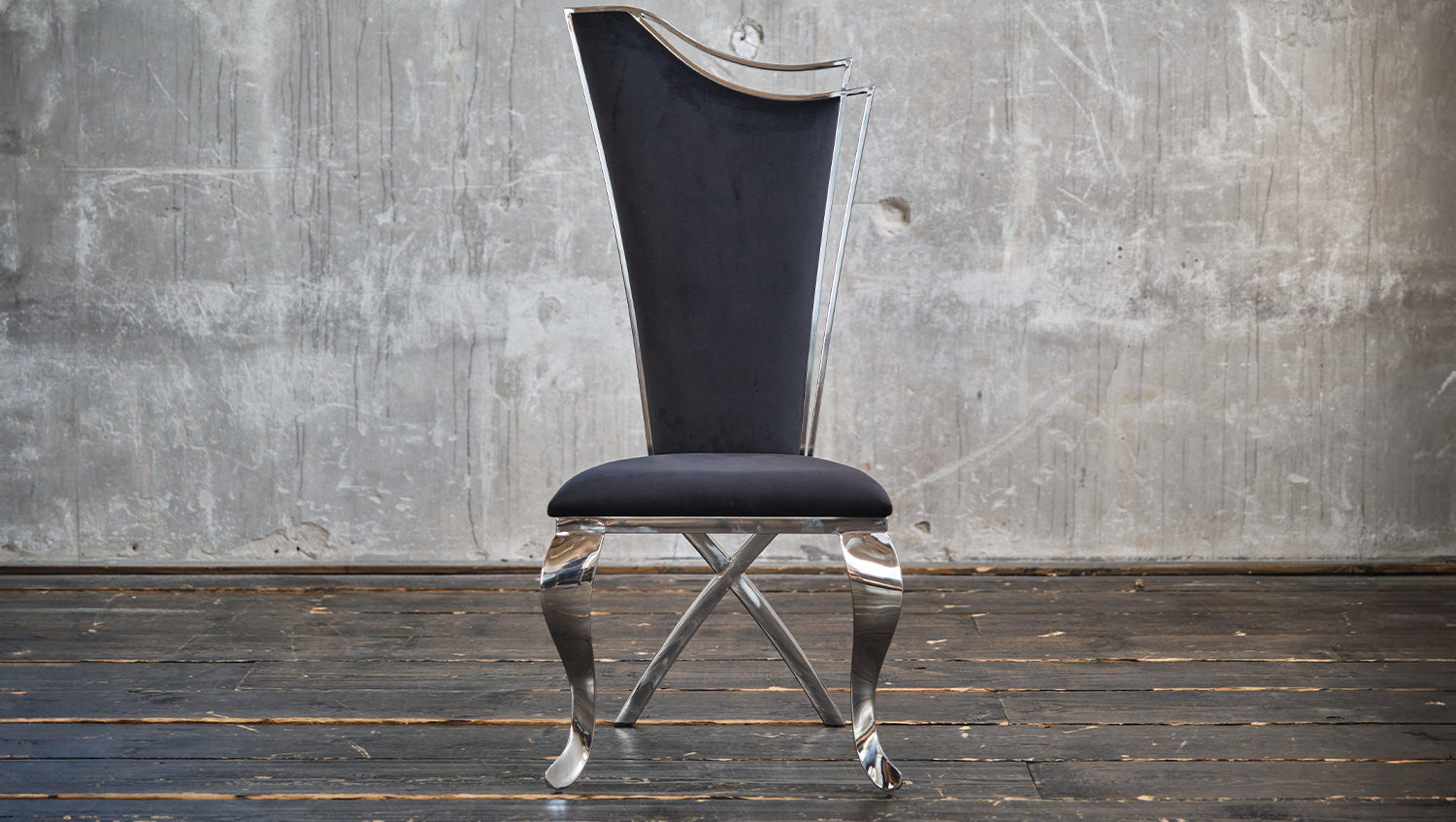 Der KAWOLA Esszimmerstuhl AMALIA ist ein Eyecatcher im eleganten Barock-Design. Hier können Sie sich bequem zurücklehnen und stilvoll speisen. Der Bezugsstoff aus Velvet ist sehr hochwertig verarbeitet, und die extravaganten Füße und das Detail an der Rückenlehne aus Edelstahl verleihen dem Stuhl seinen besonderen Look. Der Stuhl AMALIA sorgt mit seinem edlen Design für ein exklusives Wohngefühl.