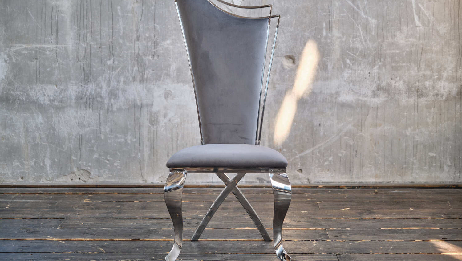 B-Ware KAWOLA Stuhl AMALIA Esszimmerstuhl Barock Velvet grau