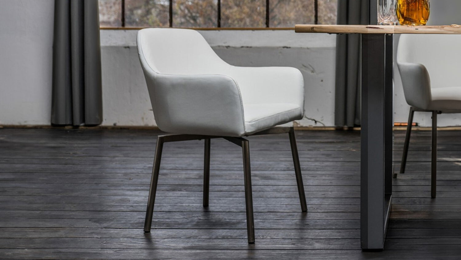 Der Bezug in Lederimitat ist pflegeleicht und Verschmutzungen können mit einem feuchten Tuch einfach entfernt werden. Durch die Wahl des Bezuges eignet sich der Stuhl mit Armlehnen für jeden Einsatzbereich; ganz gleich ob im Esszimmer, im Konferenzraum oder im Wartebereich der Stuhl Loui macht überall eine gute Figur.