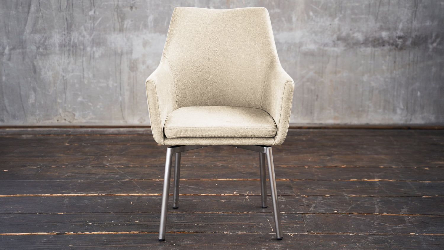 B-Ware Stuhl Cali Sessel Microfaser Esszimmerstuhl creme Füße Edelstahl