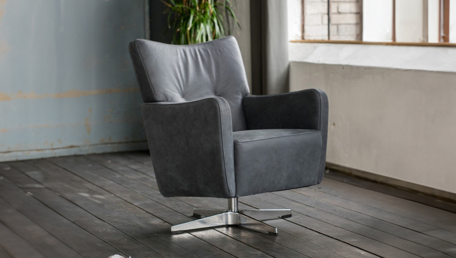 Neben dem tollen Design überzeugt der Sessel ALINE zudem durch seine Drehfunktion, durch die man frei im Raum agieren kann.