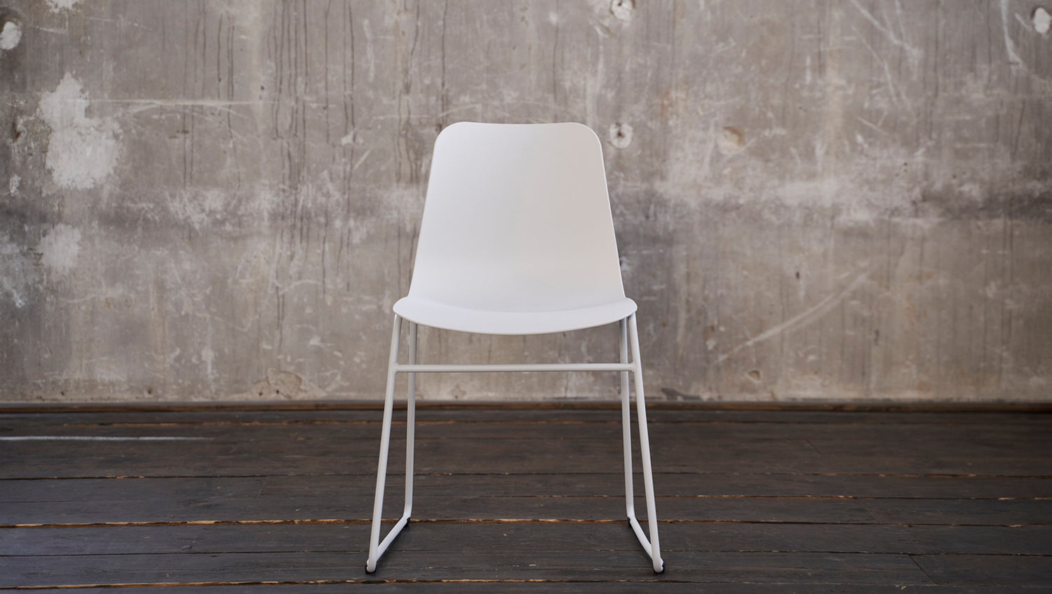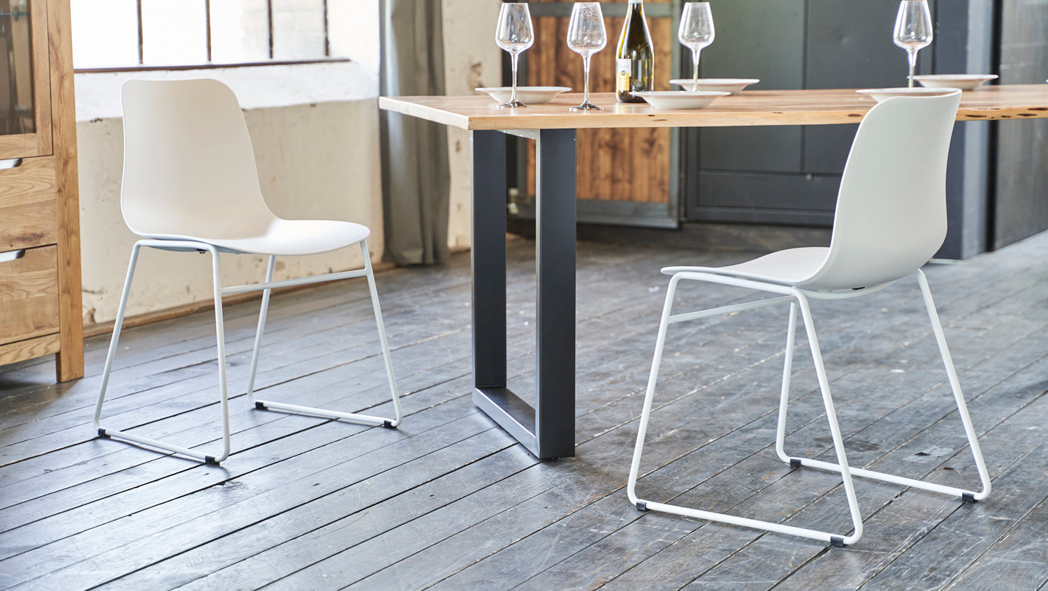 Der KAWOLA Stuhl DENNIS überzeugt durch seine Schlichtheit: Sowohl durch die Farb- als auch die Formgebung macht er einen schlanken Eindruck.