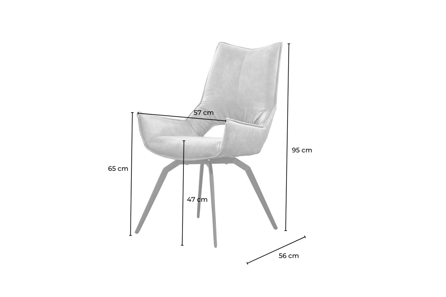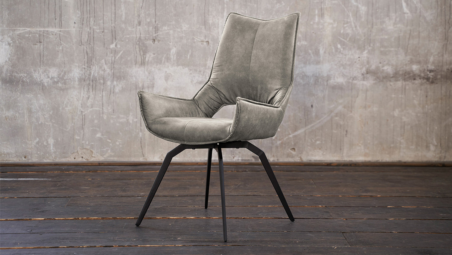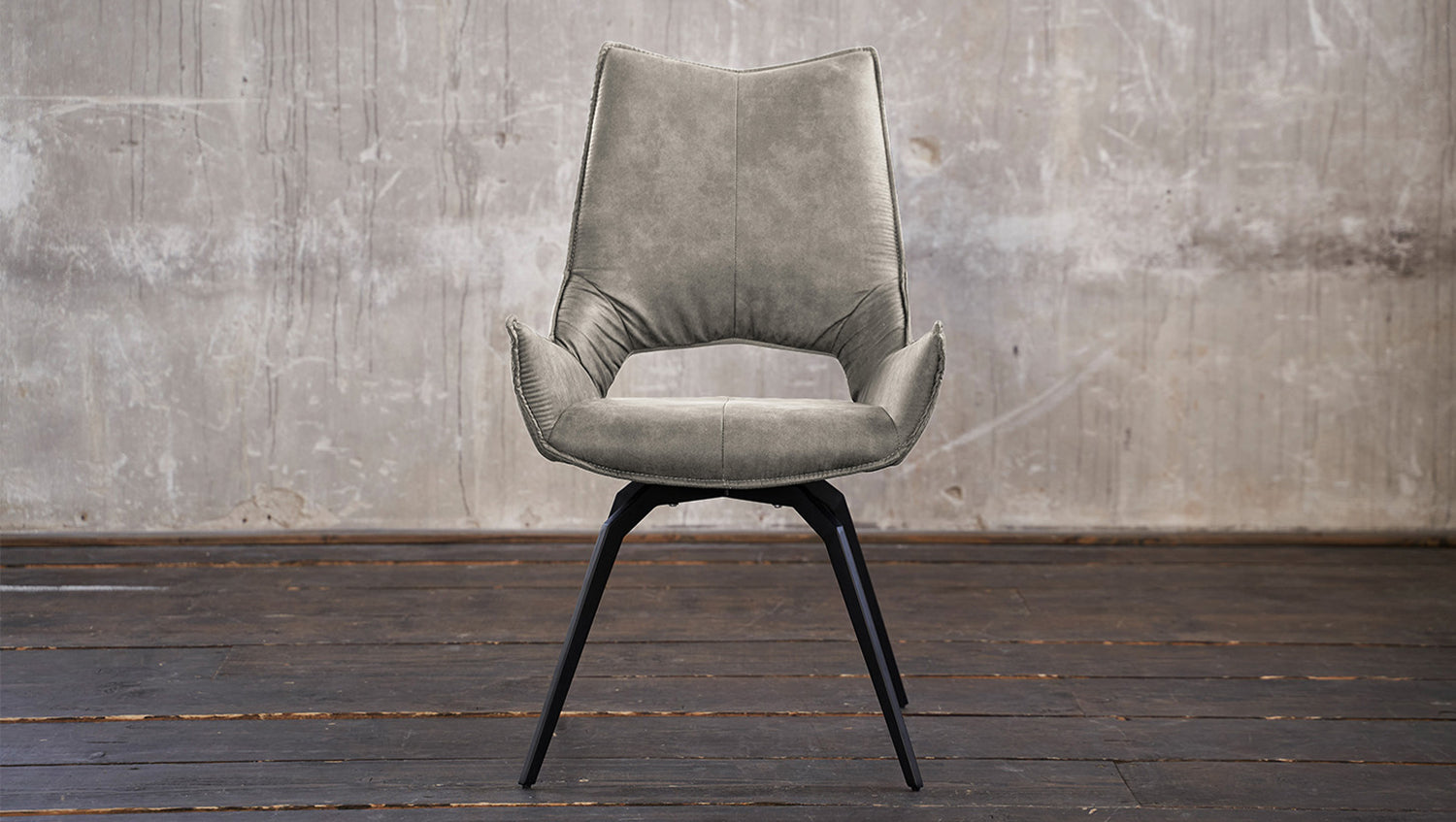 Bei diesen Stühlen handelt es sich um B-Ware aus Kundenrücksendungen, die gewisse kleinere Mängel aufweisen und daher von uns zu einem reduzierten Preis angeboten werden. Mögliche Mängel sind: Kratzer am Gestell, Druckstellen, leichte Verunreinigungen und Farbabweichungen auf der Polsterung sowie Risse im Unterbodenstoff. Bitte schauen Sie sich hierzu die Beispielbilder nach dem Hauptbild an. Der Esszimmerstuhl SIVO fällt direkt durch seine Interessante Formgebung ins Auge. Denn sowohl die angenehm gepolsterte Sitzschale, als auch die drehbaren angewinkelten Füße sind außergewöhnlich designt. In der sonst durchgängigen Sitzschale befindet sich eine Aussparung am unteren Teil des unteren Rückens, die den speziellen Look komplettiert. Der Stoffbezug des Drehsessels ist pflegeleicht und zugleich sehr angenehm in der Haptik. Der Polsterstuhl eignet sich wunderbar für den heimischen Ess- oder auch Arbeitsbereich, als Stuhl im Wartebereich oder auch als Besprechungsstuhl im Büro.