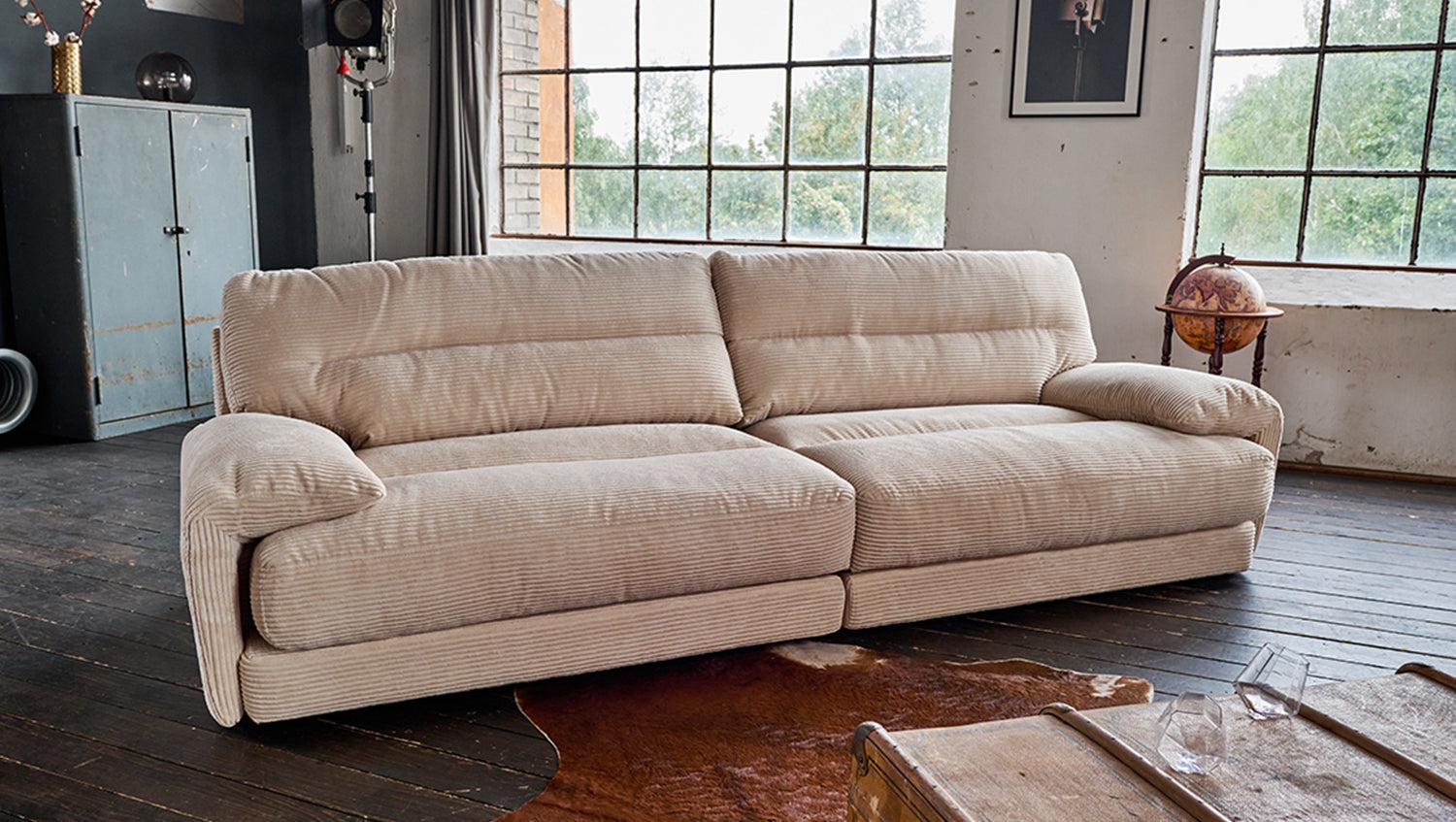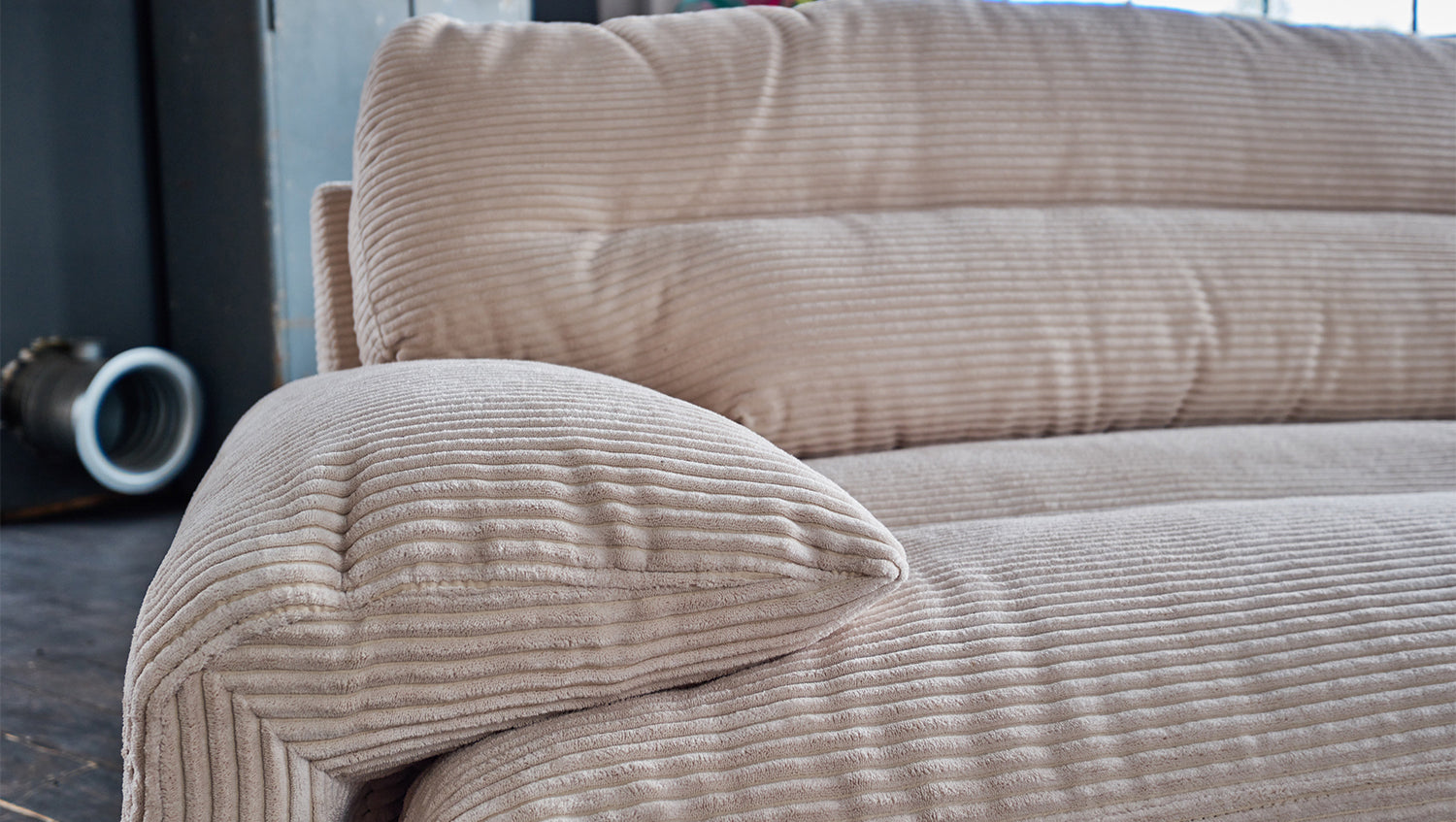 Die hochdichte Schaumstoffpolsterung garantiert optimalen Sitzkomfort, sei es für kurze Momente der Entspannung oder längere Gespräche. Der Cordbezug bewahrt auch nach langem Gebrauch seine makellose Erscheinung.