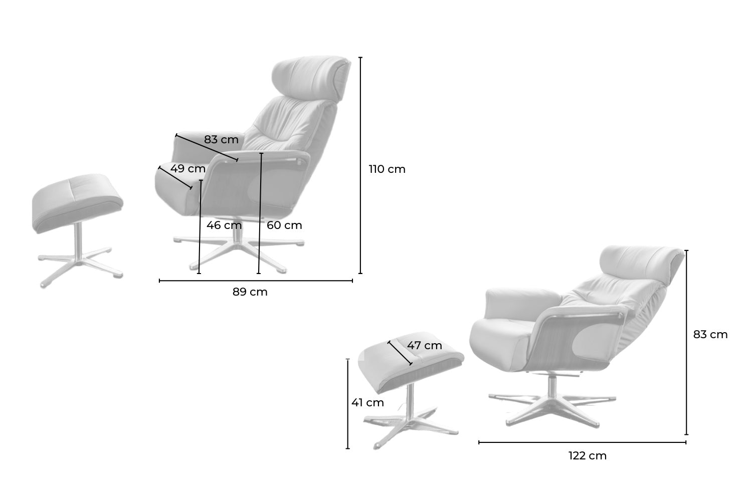 1 Sessel, 1 Fußhocker