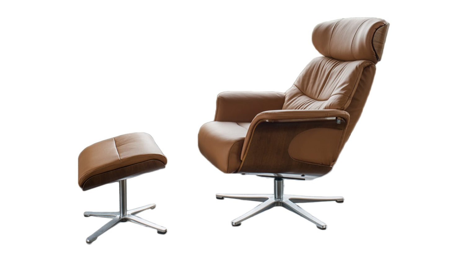 B-Ware KAWOLA Sessel TOSAR Relaxsessel drehbar Leder braun mit Hocker