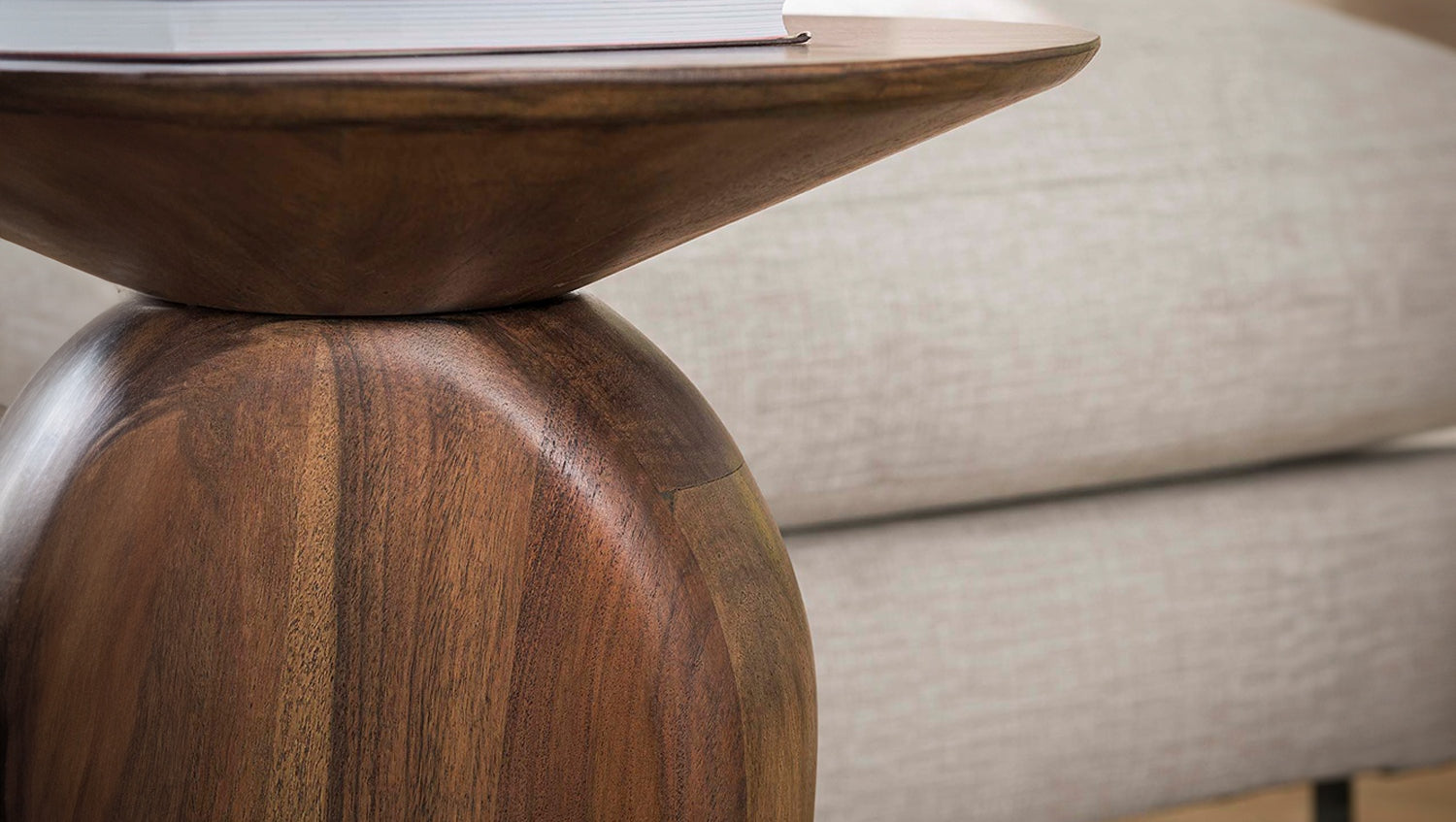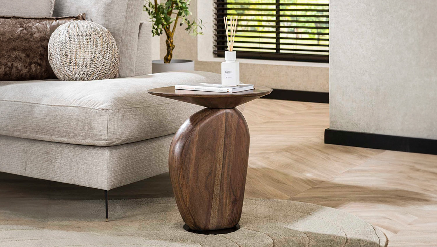 Der Beistelltisch MINOTA von KAWOLA überzeugt durch seine besondere Formgebung und die hochwertige Verarbeitung. Gefertigt aus massivem Akazienholz und mit einem matten braunen Finish versehen strahlt der Tisch eine natürliche Wärme aus die jedem Raum ein gemütliches Ambiente verleiht. Die organischen Linien der Tischplatte setzen einen verspielten Akzent und machen den Tisch zu einem außergewöhnlichen Blickfang. Die massive Bauweise sorgt für Stabilität während das elegante Design eine harmonische Balance zwischen Modernität und Natürlichkeit schafft. Der Tisch eignet sich perfekt um Dekoration Pflanzen oder Bücher in Szene zu setzen und kann sowohl im Wohnzimmer als auch in anderen Wohnbereichen vielseitig eingesetzt werden. Mit seinem zeitlosen Stil ist er ein Möbelstück das auch langfristig Freude bereitet.