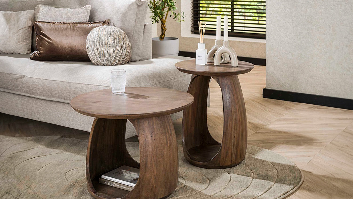 Der Beistelltisch MEVA M von KAWOLA bringt Natürlichkeit und modernes Design perfekt in Einklang. Aus massivem Akazienholz gefertigt und mit einem matten braunen Finish versehen wird die natürliche Maserung des Holzes wirkungsvoll betont. Die fließenden organischen Linien der Form sorgen für eine elegante Optik und machen den Tisch zu einem dekorativen Blickfang. Die runde Tischplatte bietet ausreichend Platz für Getränke Bücher oder Dekoration und macht den Tisch besonders alltagstauglich. Dank der robusten Bauweise steht der Tisch stabil und ist langlebig sodass er auch bei täglicher Nutzung überzeugt. Mit seinem zeitlosen Stil passt er sich mühelos verschiedenen Wohnbereichen an – sei es als kleiner Couchtisch als Ablagetisch im Wohnzimmer oder als stilvoller Akzent in einem modernen Interieur.