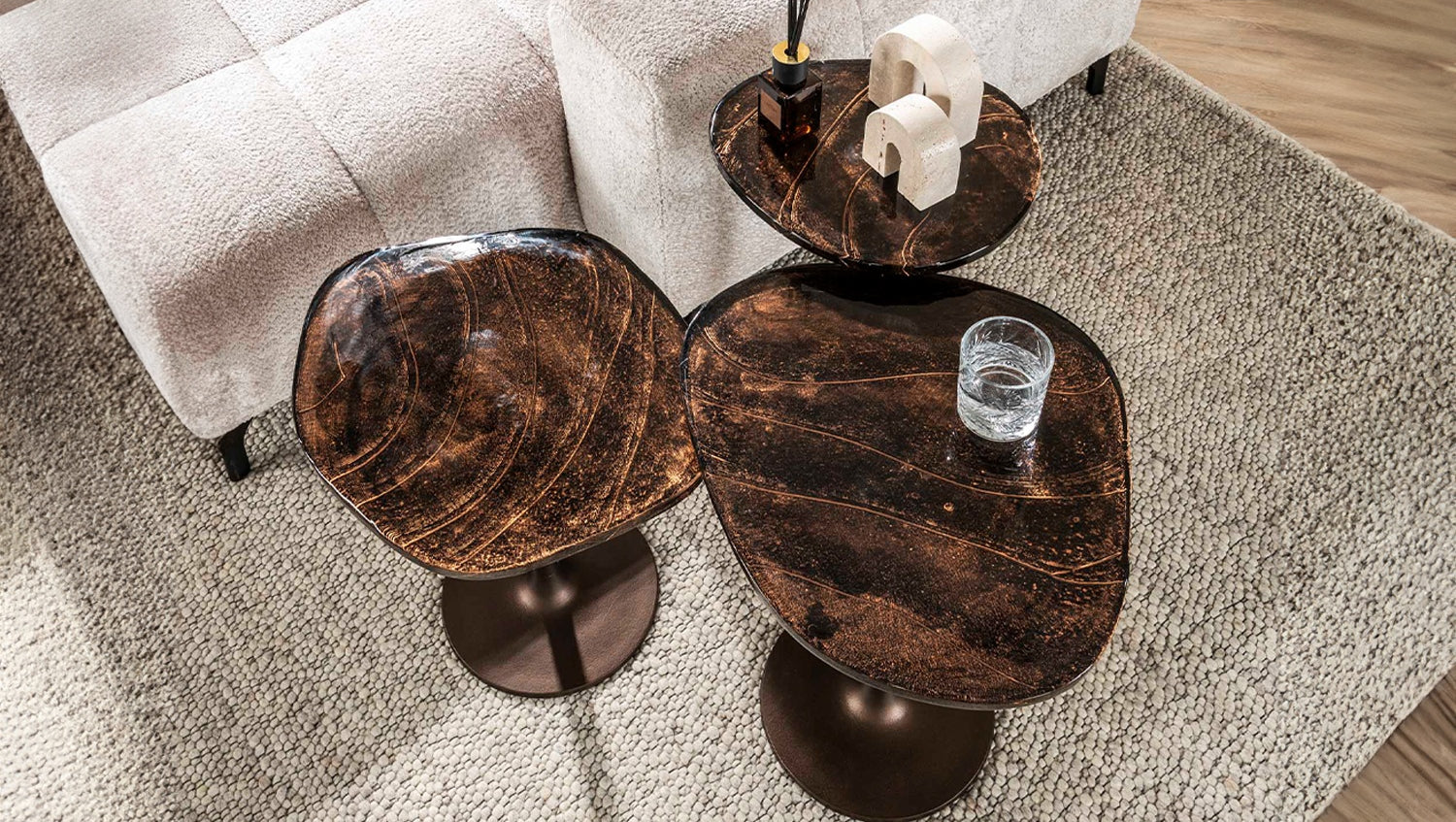 Der Beistelltisch DARI S von KAWOLA bringt Eleganz und Charakter in jeden Wohnraum. Die runde Glasplatte aus gezogenem Glas überzeugt mit einer feinen, sanft gewellten Oberfläche, die das Licht auf charmante Weise reflektiert. Die kleinen Unregelmäßigkeiten der Glasstruktur verleihen jedem Tisch eine individuelle Note und machen ihn zu einem besonderen Einzelstück. Das schlanke Metallgestell in warmem Antikkupfer rundet das Design harmonisch ab und sorgt für einen edlen, zeitlosen Look. Mit seiner kompakten Größe ist DARI die perfekte Lösung für kleinere Wohnbereiche oder als dezenter Begleiter neben Sofa oder Sessel. Er bietet eine stilvolle Ablagefläche für Getränke, Bücher oder Dekorationen und lässt sich dank seines minimalistischen Designs mühelos in jede Einrichtung integrieren. Ob als einzelner Blickfang oder als Ergänzung zu weiteren Akzentmöbeln – DARI sorgt immer für eine elegante, moderne Note.
