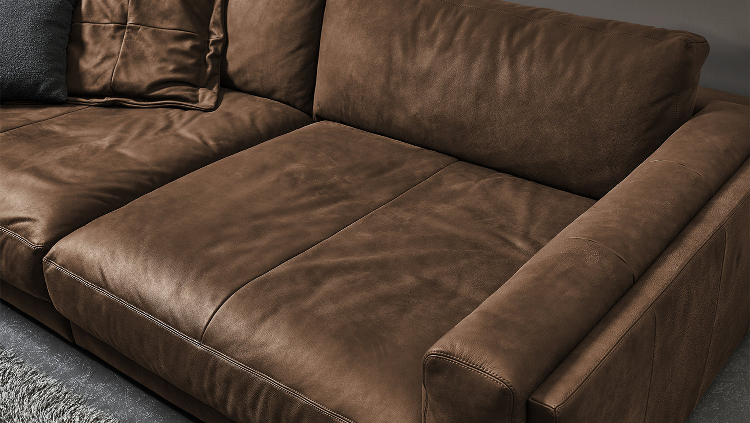 Entdecken Sie das luxuriöse Big Sofa RAINA von KAWOLA - eine meisterhafte Fusion aus Komfort und Stil. Mit einem großzügigen Rundumbezug aus hochwertigem Anilinleder ist das RAINA ein Blickfang in jedem Wohnzimmer. Das Anilinleder, veredelt in Nubuk-Optik, verleiht dem Sofa einen edlen Touch.