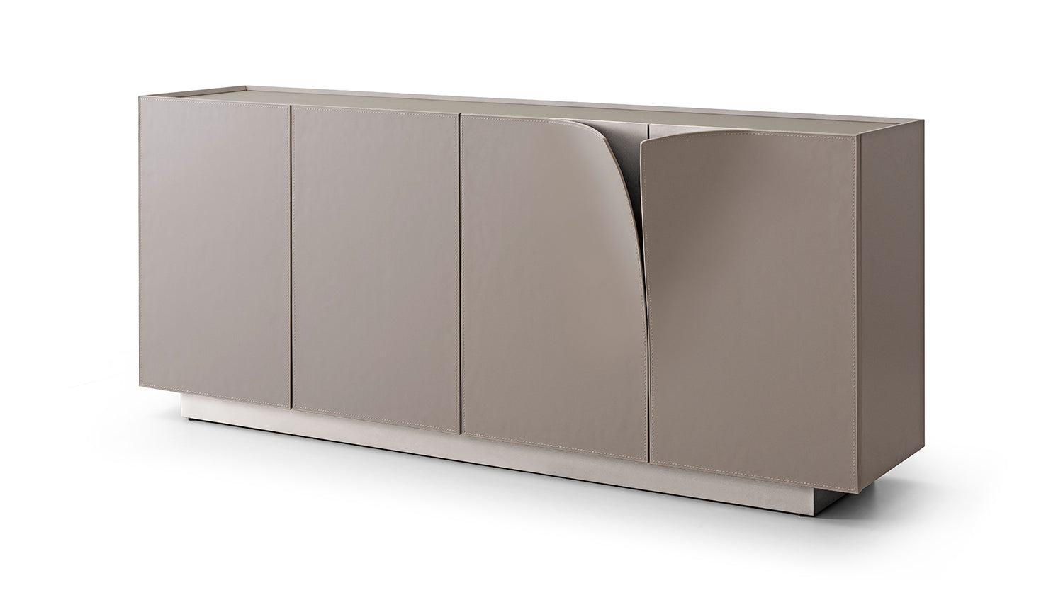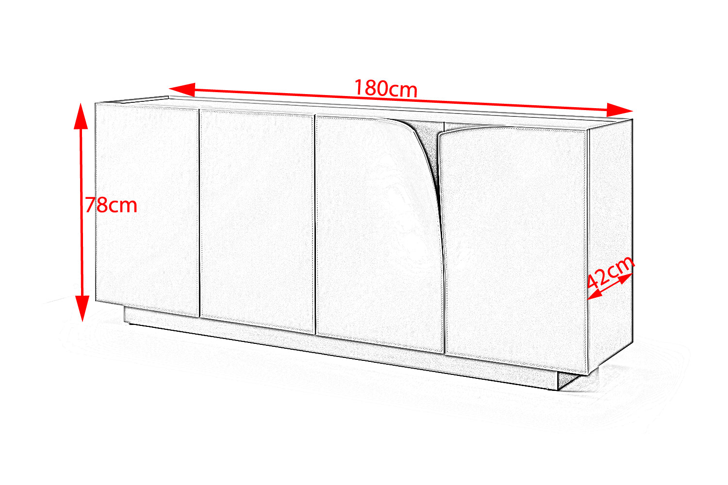 Willkommen zur Vorstellung des exquisiten Sideboards EMMA von KAWOLA! Dieses moderne Möbelstück in stilvollem Grau vereint Funktionalität und Ästhetik, perfekt für den urbanen Flair eines modernen Großstadtlofts. Mit 8 Fächern bietet das EMMA Sideboard bietet ausreichend Stauraum für optimale Organisation. Die Front aus Kunstleder-beschichtetem Metall, leicht nach vorne gebogen an zwei Stellen, dient als raffiniertes Designelement und Griff für die Türen. Die Ablagefläche mit eleganter Mattglas-Platte sieht nicht nur edel aus, sondern bietet auch eine robuste Oberfläche für Dekorationen oder elektronische Geräte. Der Sockel aus gebürstetem Edelstahl verleiht dem EMMA Sideboard zeitlose Eleganz, Stabilität und Langlebigkeit. Ob als stilvoller Schrank oder Blickfang im Wohnzimmer - das EMMA Sideboard von KAWOLA ist ein absolutes Must-Have. Holen Sie sich dieses außergewöhnliche Möbelstück und verwandeln Sie Ihr Wohnzimmer in einen Ort der Eleganz, der den urbanen Lifestyle perfekt widerspiegelt.