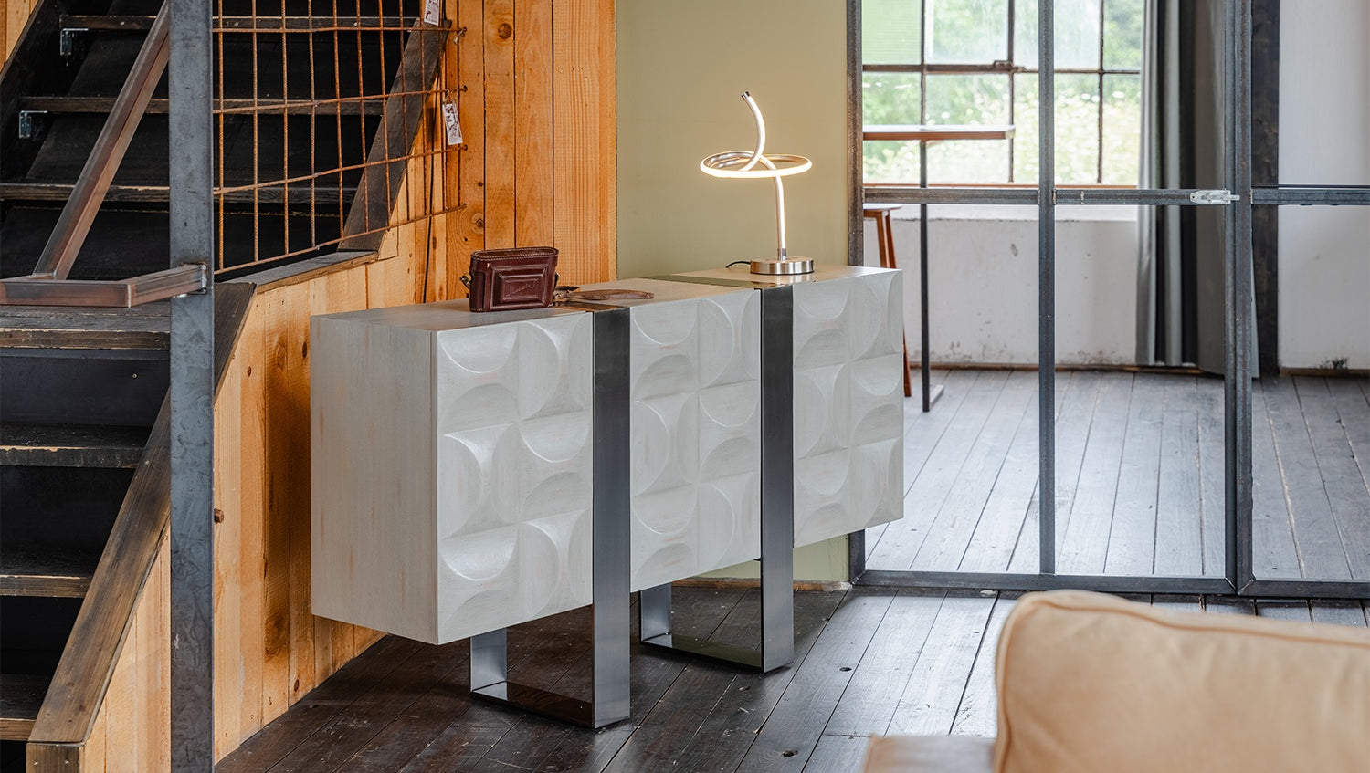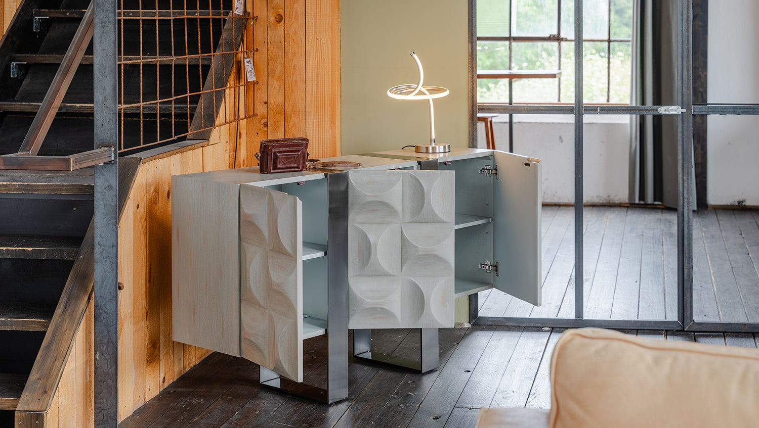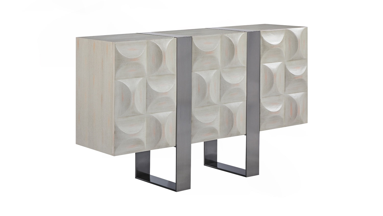Das KAWOLA Sideboard MARGO besticht durch seine elegante Kombination aus modernem Design und praktischer Funktionalität. Der Korpus und die Türen sind stilvoll mit hochwertigem grauen Ulmenholz furniert, das dem Möbelstück eine luxuriöse Optik verleiht. Die drei Türen bieten großzügigen Stauraum und lassen sich dank des Muldengriffes an der Oberseite mühelos öffnen. Die silberfarbenen Kufenfüße aus gebürstetem Edelstahl sorgen für einen modernen, zeitlosen Look und bieten gleichzeitig stabile Standfestigkeit. Variabel einsetzbare Einlegeböden ermöglichen eine flexible Nutzung des Innenraums und passen sich Ihren Bedürfnissen an. Das Sideboard MARGO von KAWOLA fügt sich perfekt in jedes Wohnambiente ein und ist ideal für Liebhaber von ausgefallenen, aber dennoch eleganten Möbelstücken. Entdecken Sie die perfekte Kombination aus Design und Funktionalität mit dem Sideboard MARGO!