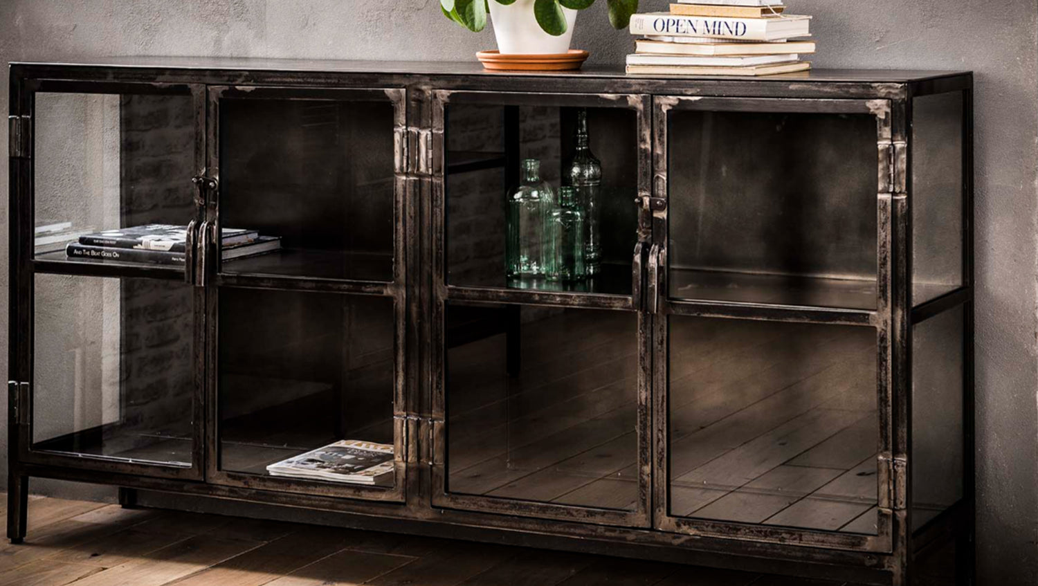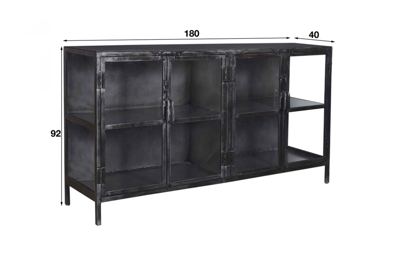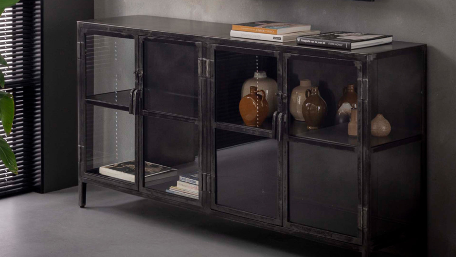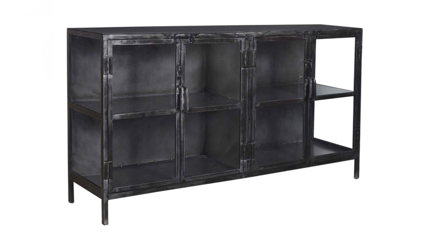KAWOLA Sideboard BREST Vitrine Metall schwarz 4 Türen