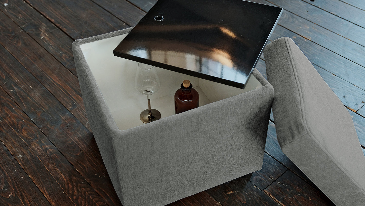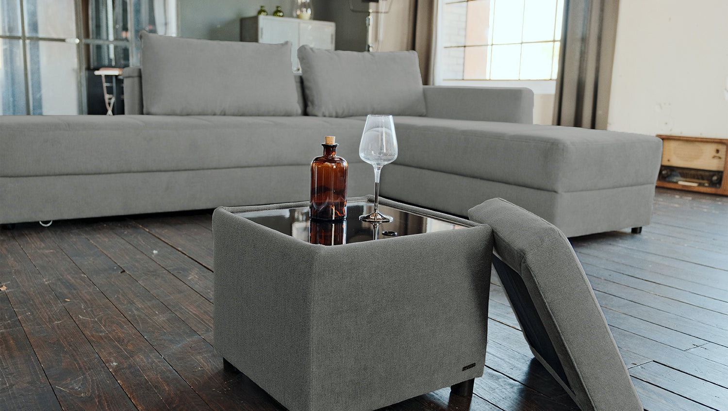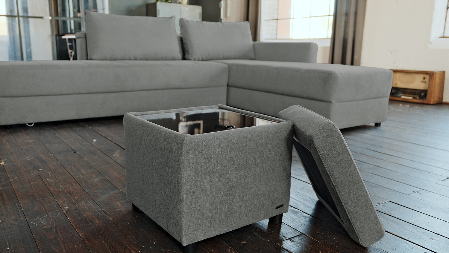 Der KAWOLA Hocker mit Stauraum IDA ist nicht nur optisch ein Hingucker, denn er bietet verschiedene Nutzungsoptionen. Mit wenigen Handgriffen ist der Hocker zum Tisch verwandelbar. Zudem verfügt er über einen geschickt versteckten Stauraum, an den man durch das Abnehmen der Sitzfläche gelangen kann. Der Hocker ist die perfekte Ergänzung zum gleichnamigen Schlafsofa IDA.