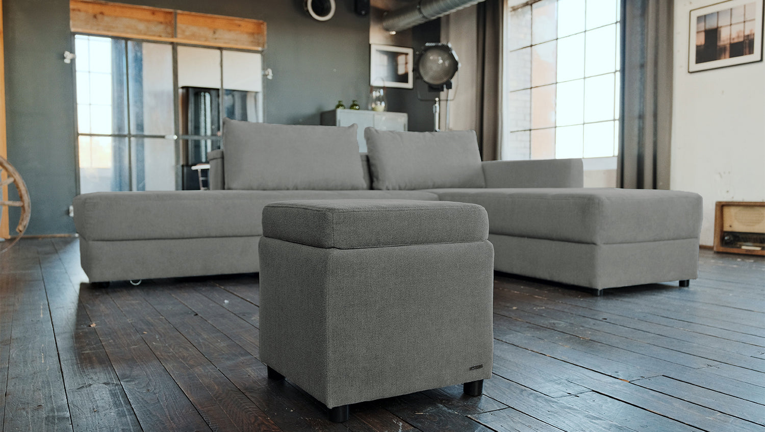 KAWOLA Hocker mit Stauraum IDA Stoff anthrazit