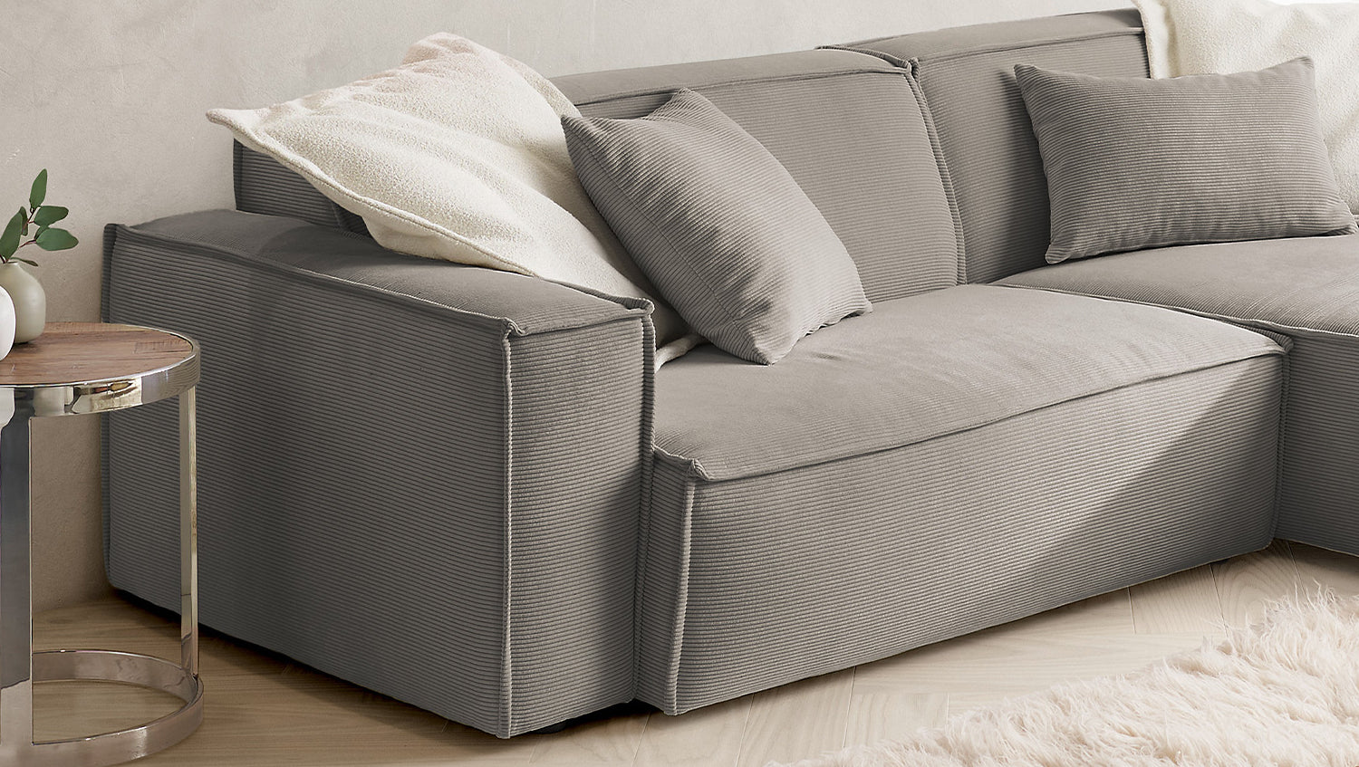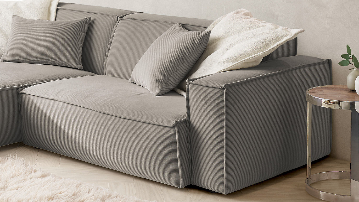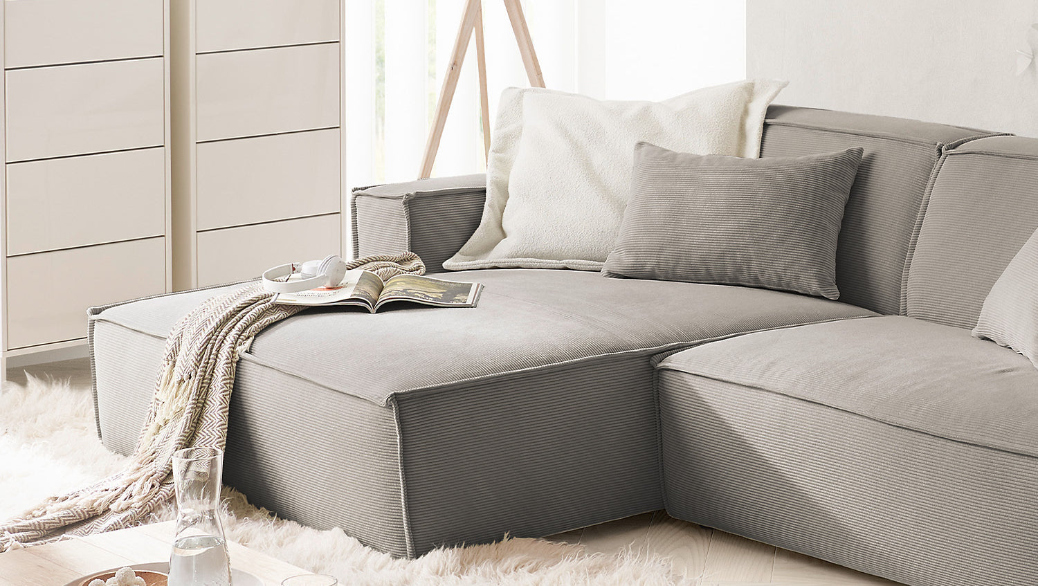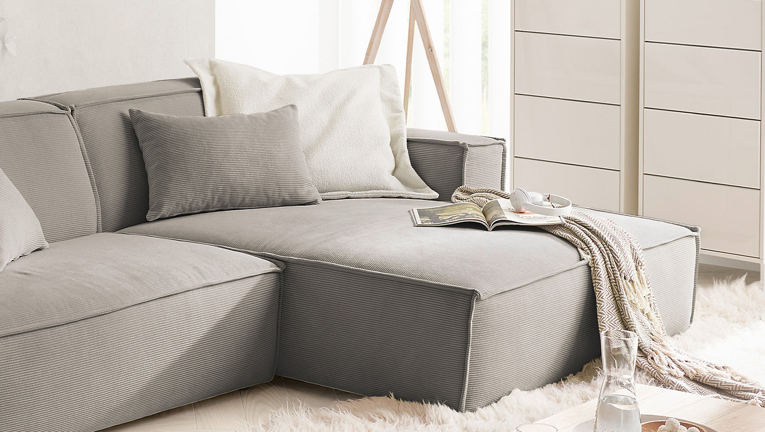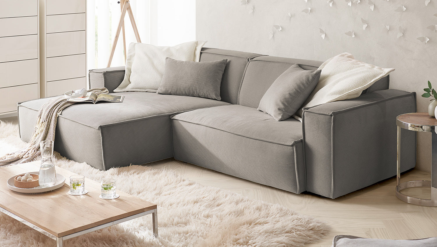 KAWOLA Sofa SAMU Ecksofa Feincord grau