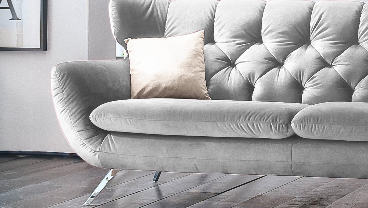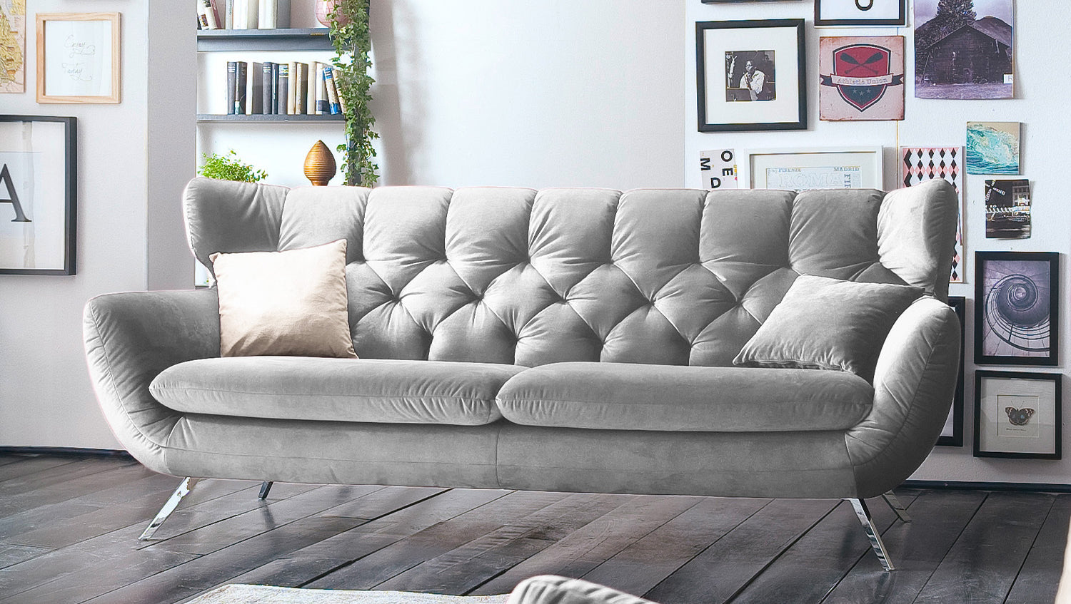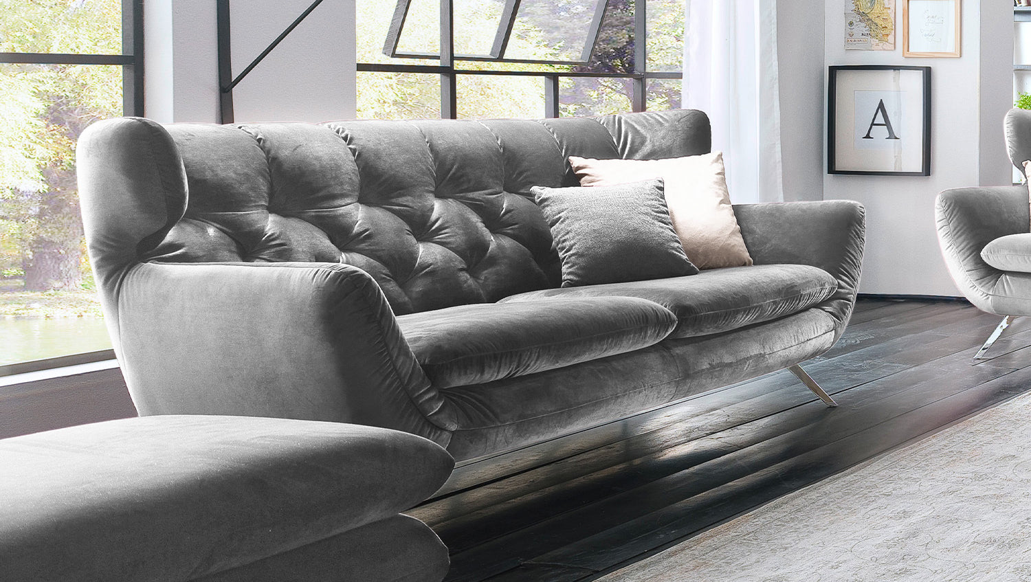 KAWOLA Sofa CHARME Velvet silber