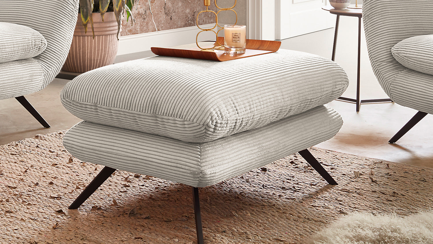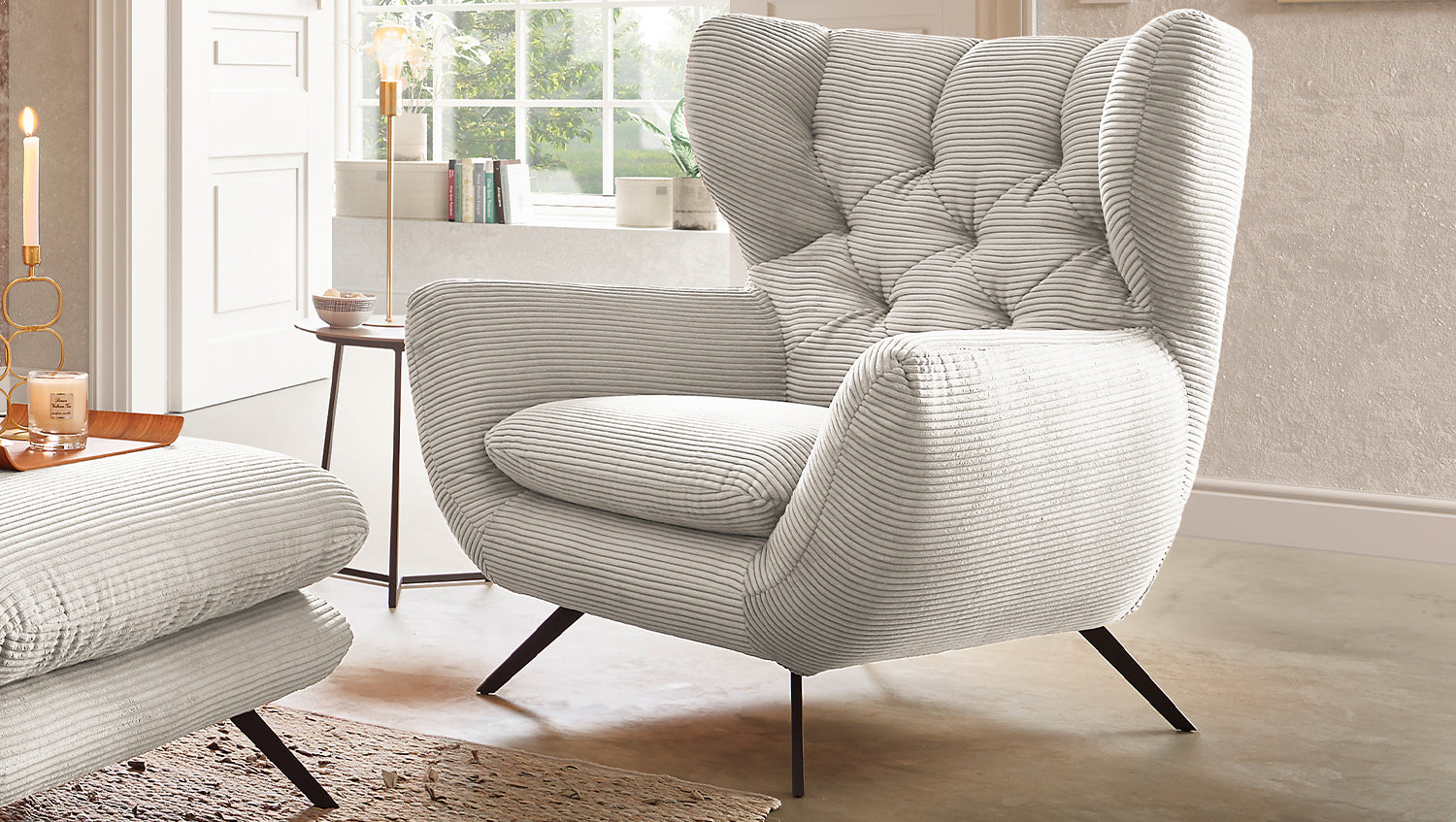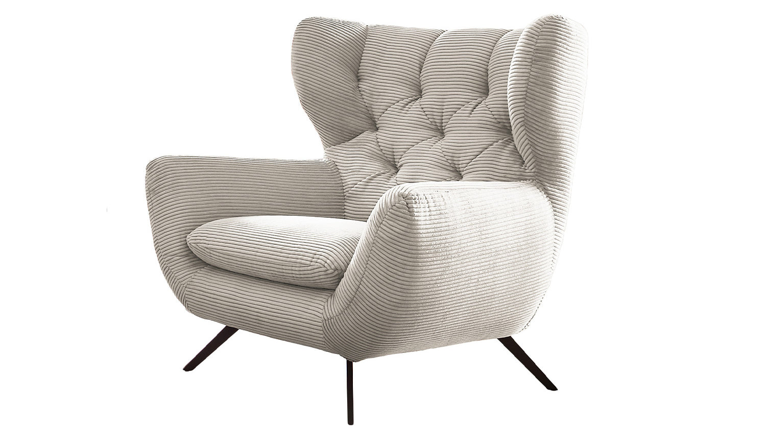 Der KAWOLA Sessel CHARME ist ein ganz besonderer Sessel und setzt als wahres Designerstück neue Akzente im Wohnraum. Der Stil des Sessel CHARME erinnert an die sechziger Jahre: Der Rücken wurde aufwendig abgesteppt ohne Knöpfe; die Rückenlehne wurde an den beiden Seiten leicht nach vorne gewölbt und erinnert an die Form eines Ohrensessels; die Füße aus pulverbeschichtetem Metall sind leicht ausgestellt. Zu der ausgefallenen Form des Sessel CHARME wurde der Bezug hier in Cord gewählt und erscheint leicht samtig. Die Polsterung des KAWOLA CHARME besteht aus PUR-Schaum und besticht durch ihren weichen und legeren Sitzkomfort. Selbstverständlich wurde der Sessel komplett mit dem Cord Stoff überzogen, sodass dieser tolle Sessel auch frei in den Raum gestellt werden kann. Wer nicht nur einen Sessel sucht, sondern ein ganz besonderes Highlight, der liegt mit dem KAWOLA Sessel CHARME goldrichtig!