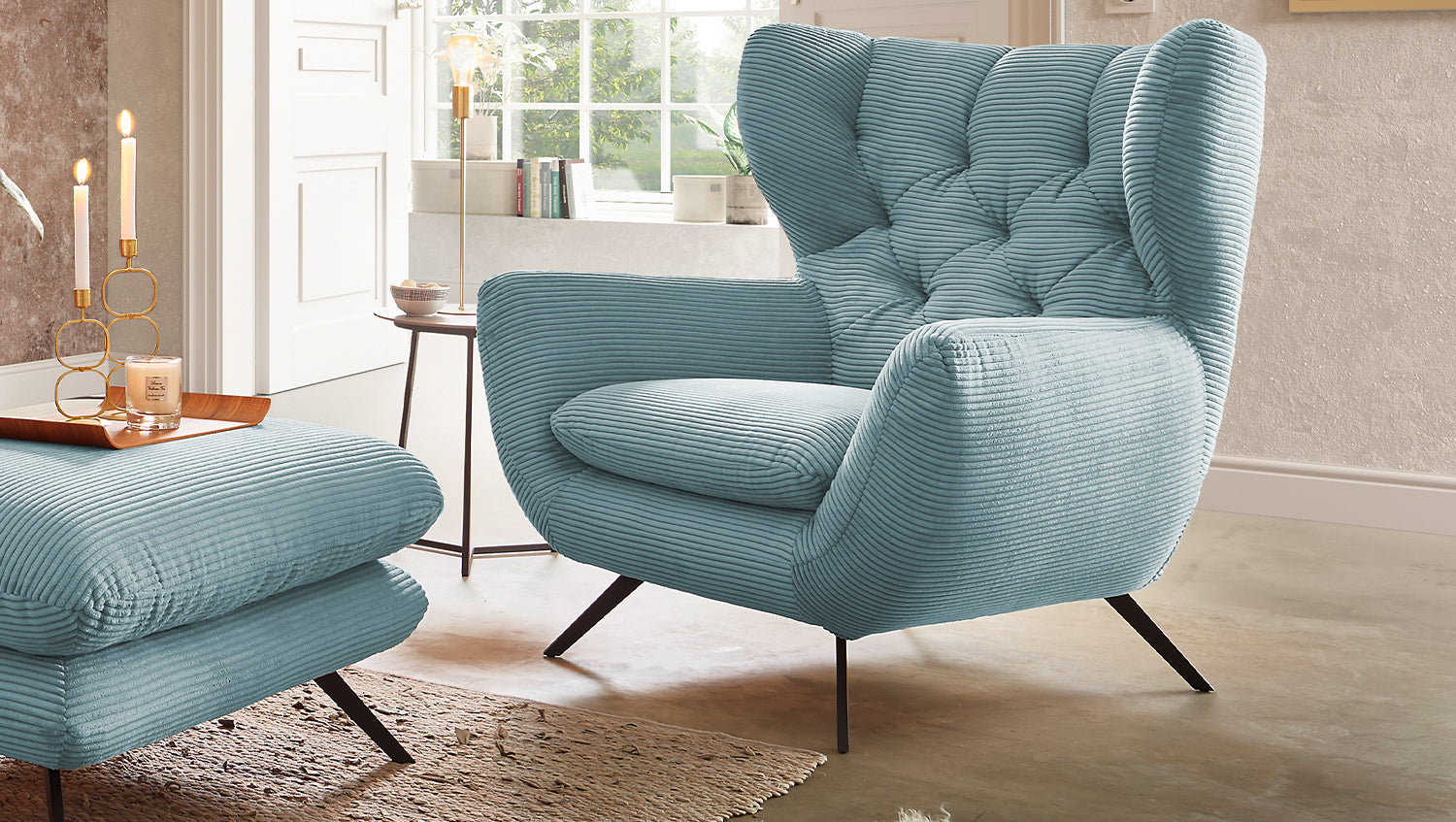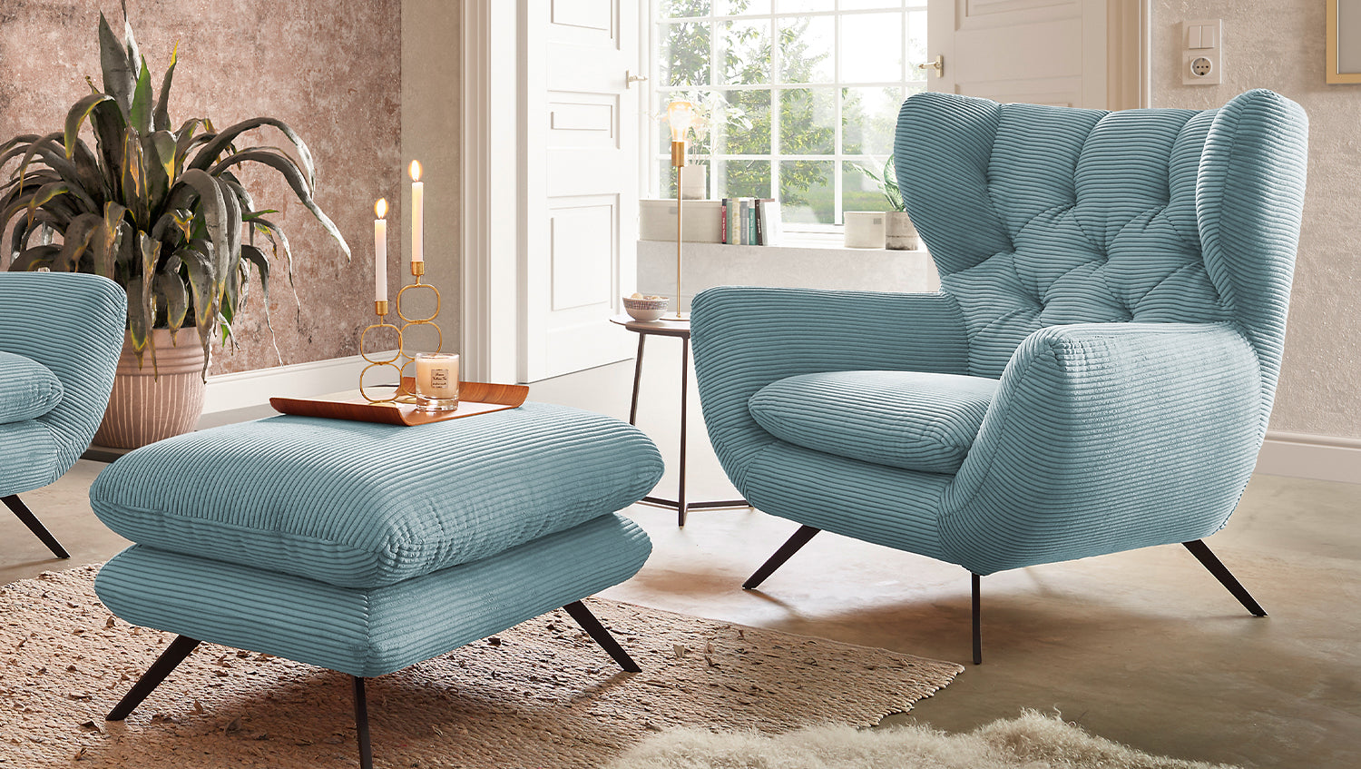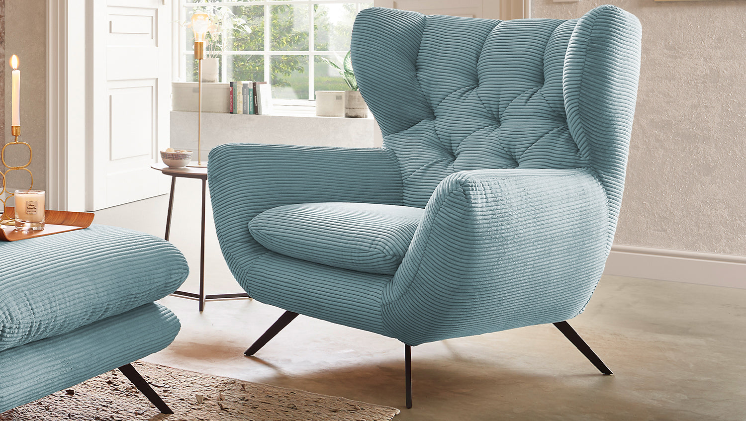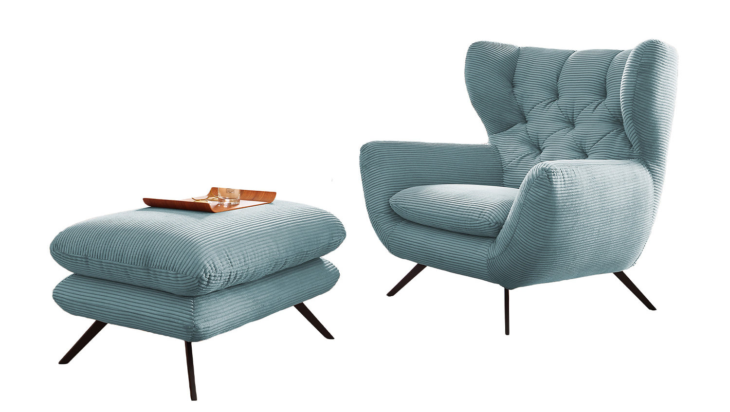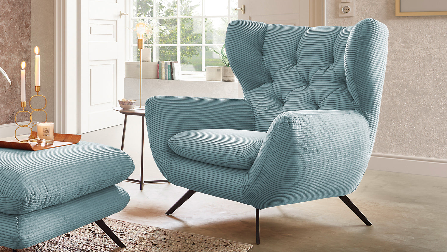 KAWOLA Sessel CHARME Hochlehnsessel Cord hellblau