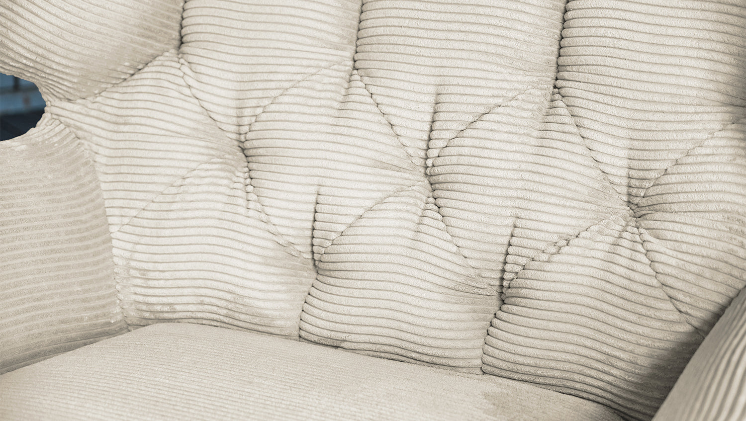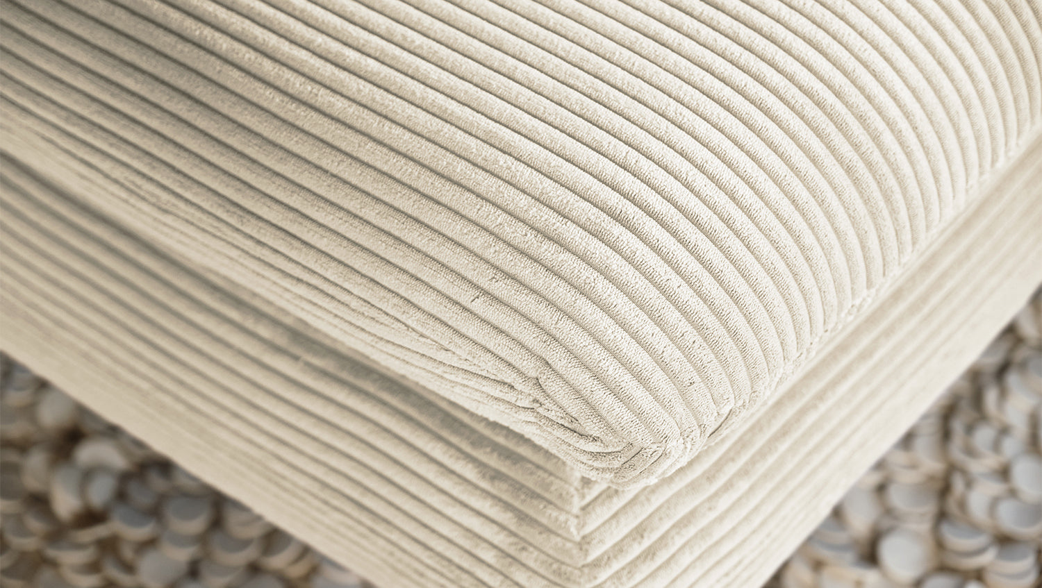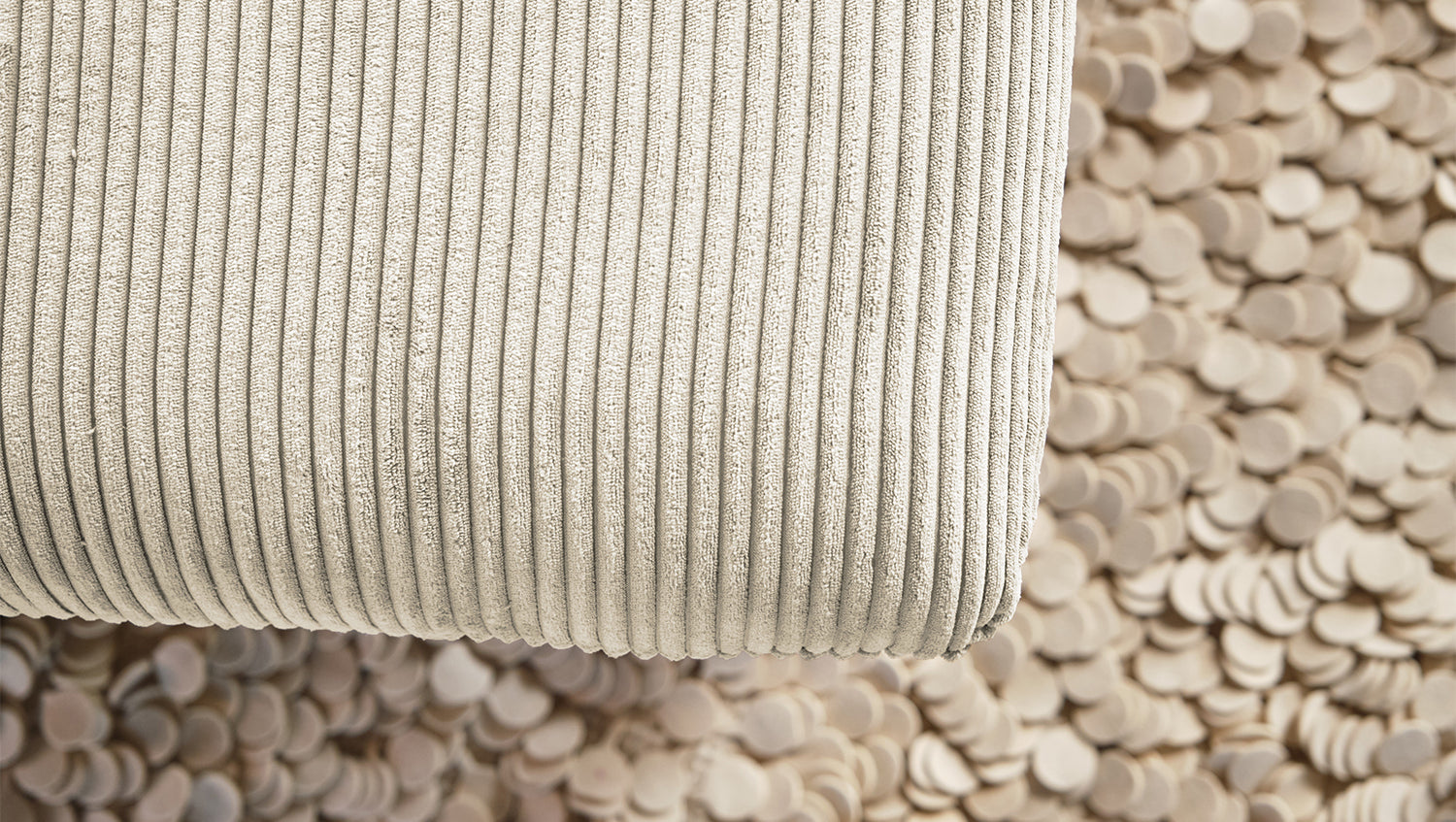 Selbstverständlich wurde der Longseat komplett mit dem Cord Stoff überzogen, sodass dieses tolle Liegesofa auch frei in den Raum gestellt werden kann.