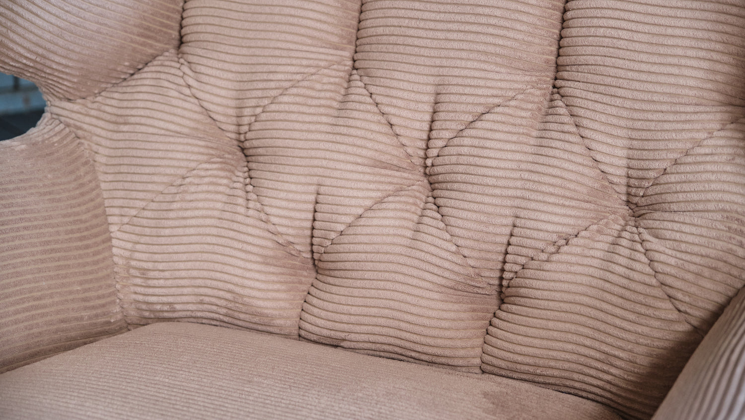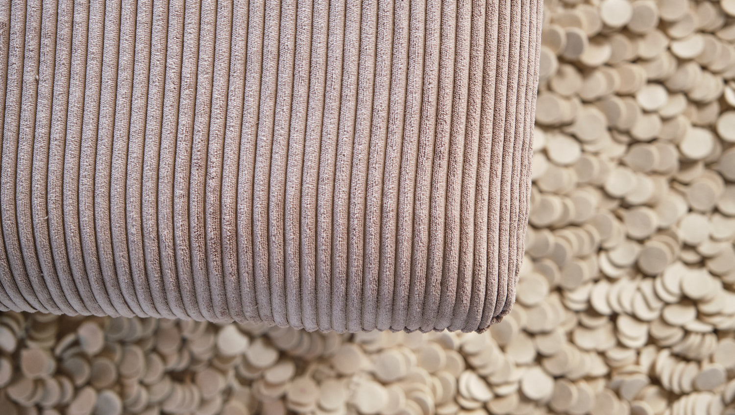 Selbstverständlich wurde der Longseat komplett mit dem Cord Stoff überzogen, sodass dieses tolle Liegesofa auch frei in den Raum gestellt werden kann.
