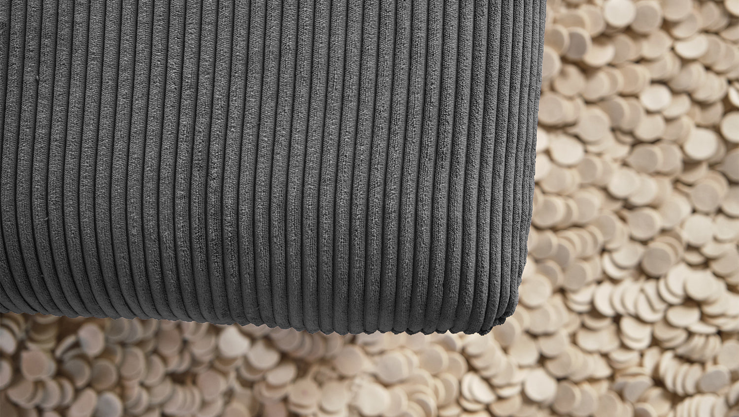 Selbstverständlich wurde der Longseat komplett mit dem Cord Stoff überzogen, sodass dieses tolle Liegesofa auch frei in den Raum gestellt werden kann.